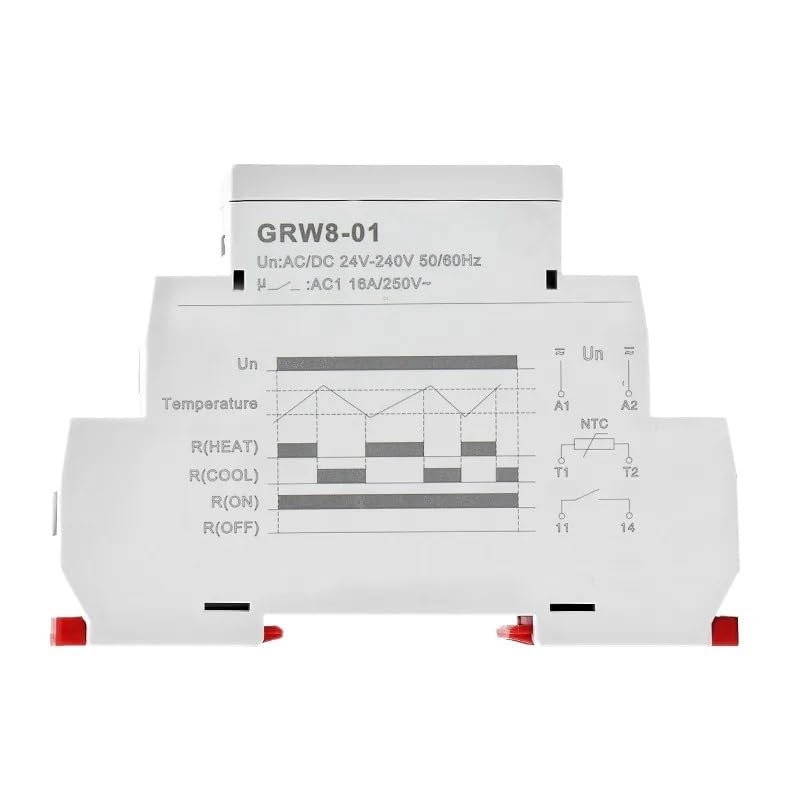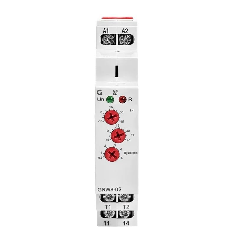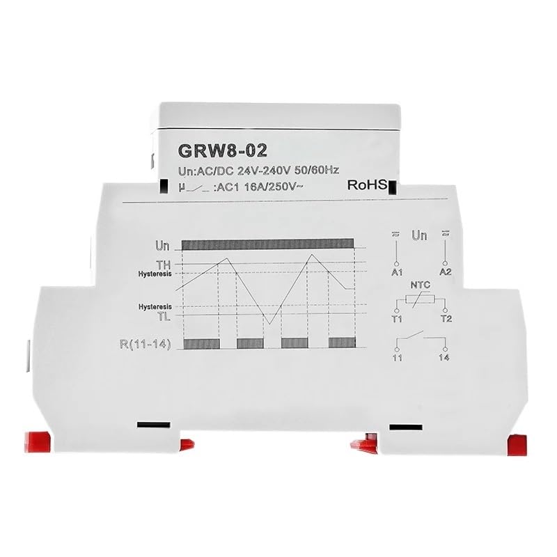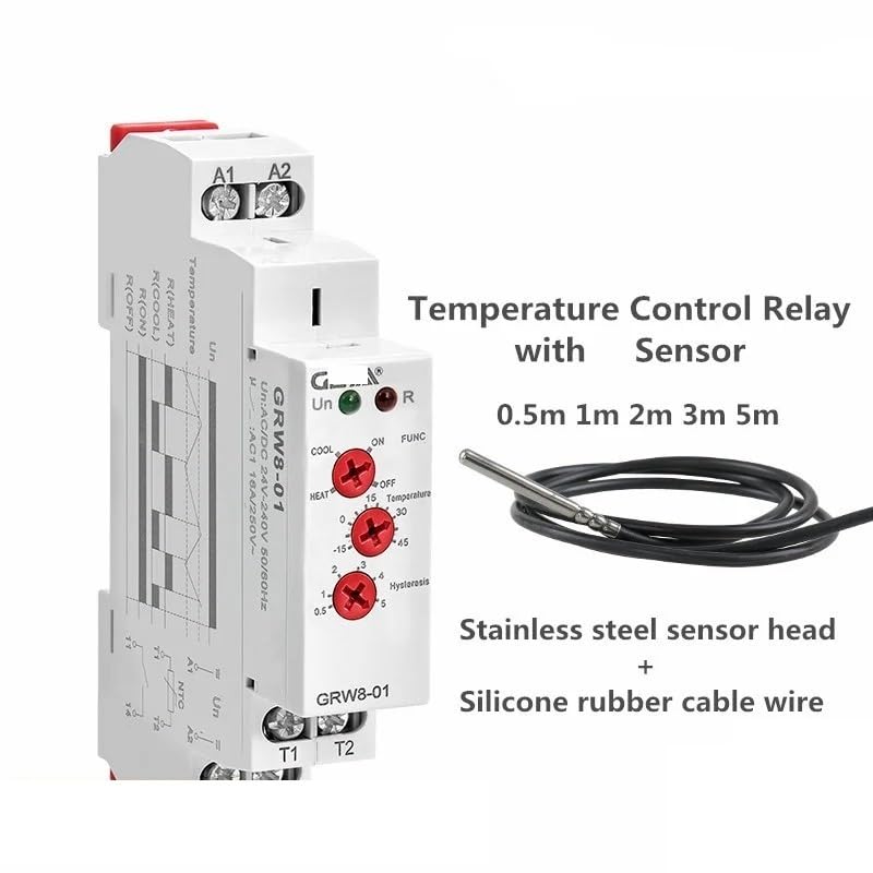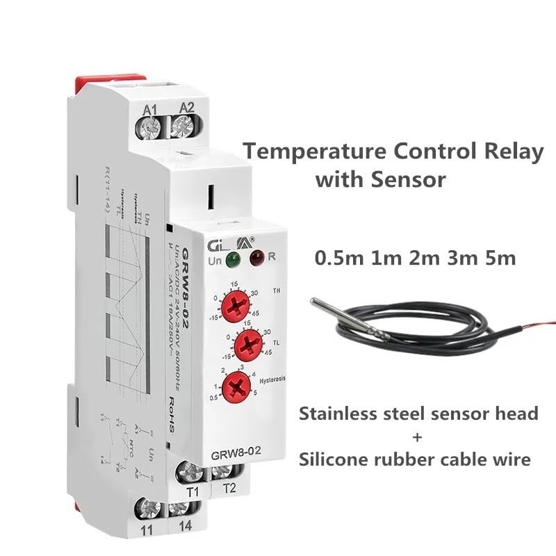 GRW8-01/02 Din Rail Temperature Monitoring Relay 16A Wide Range Voltage AC/DC24-240V with Waterproof Sensor