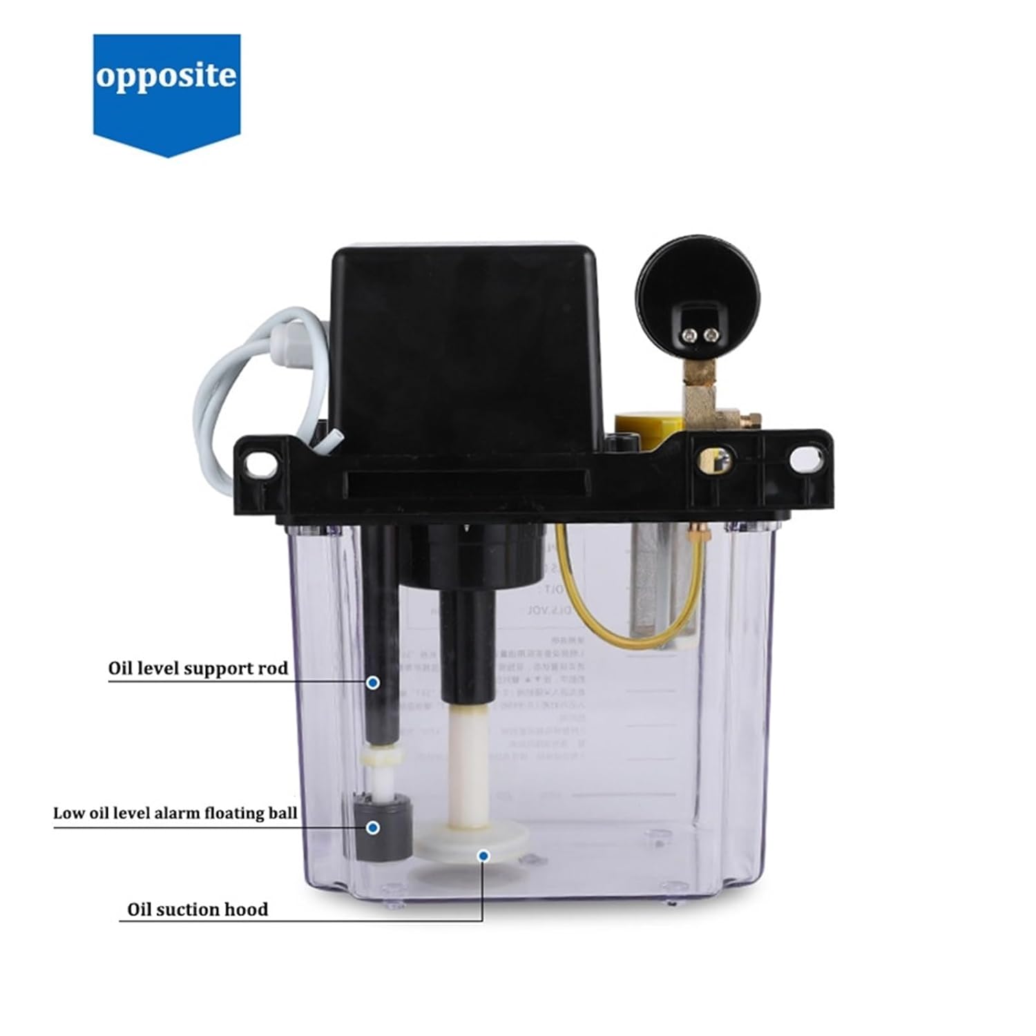 Instructions:1. Set the interval time and operation time according to the actual oil consumption of the equipment. Long press the "SET" key to enter the setting state, then short press the "SET" key to select the number to be set, press to increase or decrease to the required time. First enter the interval time (0 ~ 999 minutes), more than 10 minutes is recommended. Then press the "SET" key to enter the running time (0 ~ 999 seconds), within 120 seconds is recommended. Finally, long press the "SET" key to save the set time.2. The alarm buzzer rings intermittently, and the display screen shows "ERO" for oil level alarm. Please fill the oil tank.3. With inching button, press and hold the inching button to enter the working state.4. Use 15#-68# lubricating oil only, recycling is strictly prohibited. If it is not used according to the regulations, the oil pump will be damaged.Power Source : OtherTheory : Electromagnetic PumpStructure : Piston PumpModel Number : 220V 2L Electromagnetic Oil PumpStandard or Nonstandard : StandardPressure : Low PressureOrigin : China MainlandPower (W) : Electric
