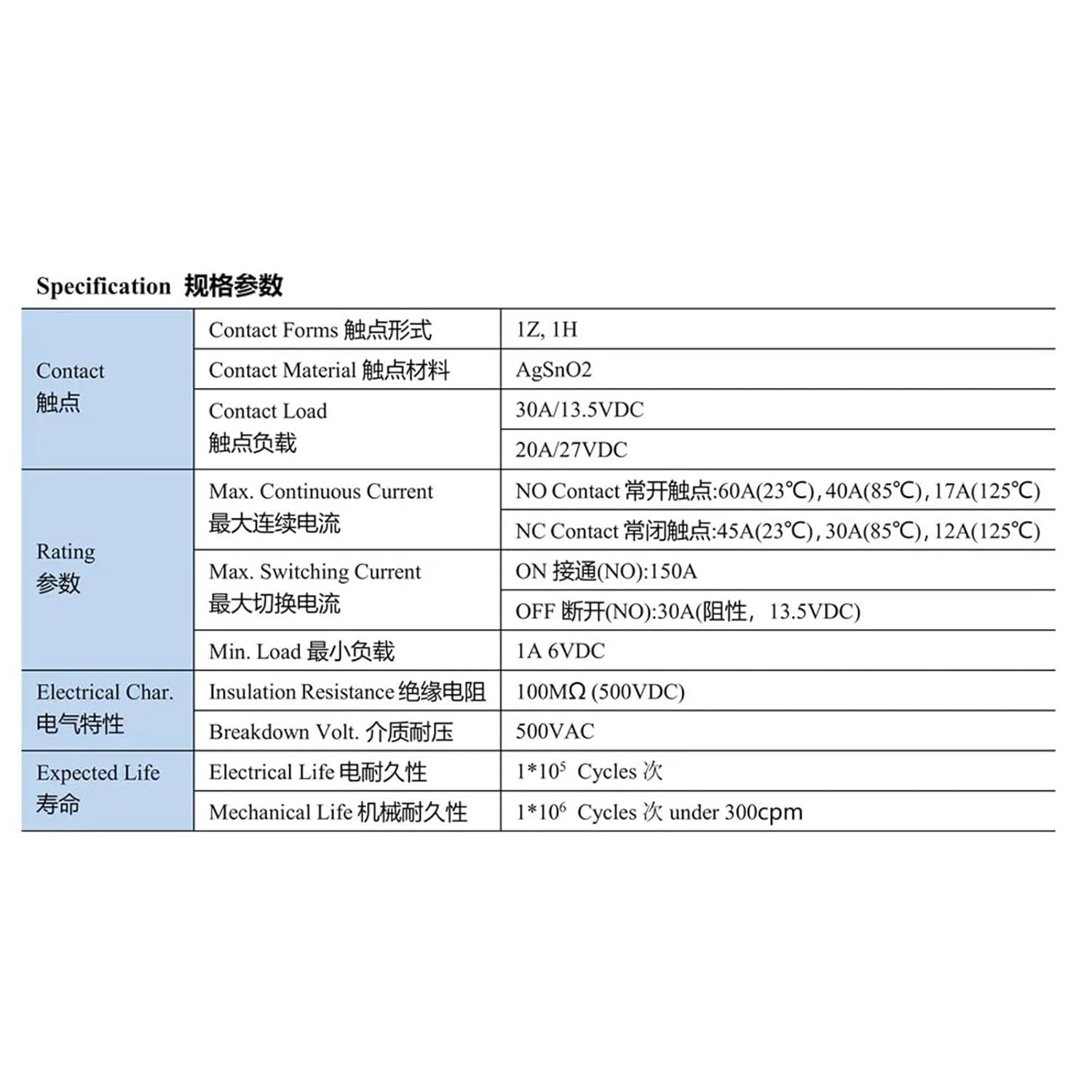 RelaysAuto Car Relay JD1914 12V 30A 5 Pin Fuse Insert Blade Switching Contact Form for Automobile Electronic Control Device AccessorySpecifications:Product Name: Auto Car RelayProduct No.: JD1914Application: Car Wire Refit, Rear Defogger, Battery Circuit Breaker, Air Conditioner, Pump, Fog Light, Cooling Fan, Headlight, Start-stop ControlContact Forms: SwitchingContact Material: AgSnO2Contact Load: 40A/13.5VDC, 20A/27VDCMax. Continuous Current: NO Contact: 60A(23), 40A(85), 17A(125)Max. Continuous Current: NC Contact: 45A(23), 30A(85), 12A(125)Max. Switching Current: ON: 150AMax. Switching Current: OFF: 30A (13.5VDC)Min. Load: 1A 6VDCInsulation Resistance: 100M (500VDC)Breakdown Volt.: 500VACElectrical Life: 1*10^5 CyclesMechanical Life: 1*10^6 Cycles under 300cpmNominal Volt. (VDC): 12Pick-up Volt. (VDC): 7.2Release Volt. (VDC): 1.2Coil Res. X(1±10%): 90Power Dissipation (W): 1.8Max. Voltage 23 (VDC): 20.2Max. Voltage 85 (VDC): 15.7Nominal Volt. (VDC): 24Pick-up Volt. (VDC): 16Release Volt. (VDC): 2.4Coil Res. X(1±10%): 320Power Dissipation (W): 1.8Max. Voltage 23 (VDC): 40.5Max. Voltage 85 (VDC): 31.5Package Size: 17 x 15 x 8cmGross Weight: 45gPackage Included:1 x Auto Car Relay (1pc Only)Hign-concerned Chemical : NoneModel Name : MST001007Item Type : Car Relays