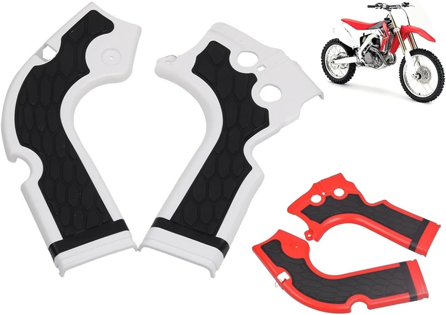 Fitment:Compatible With CRF250R 2014-2016Compatible With CRF450R 2013-2016Note:These guards do not fit For CRF X bikes.Description:Type:Frame Guard Cover Protector KitMaterial: ABS Plastic, durable and long-lasting.Stylish design: Perfect decoration for your motorcycle.Easy installation: can be mounted easily, no complicated tools required, convenient to use.Package Includes:1 Set Frame Guard Cover ProtectorsNote:1. Please allow slightly error due to manual measurement.2. Due to the difference between different monitors, the picture may not reflect the actual color of the item.3. Wish you a wonderful on-line shopping!4.Please check out the size and product fits your motorcycle or not before you purchase.