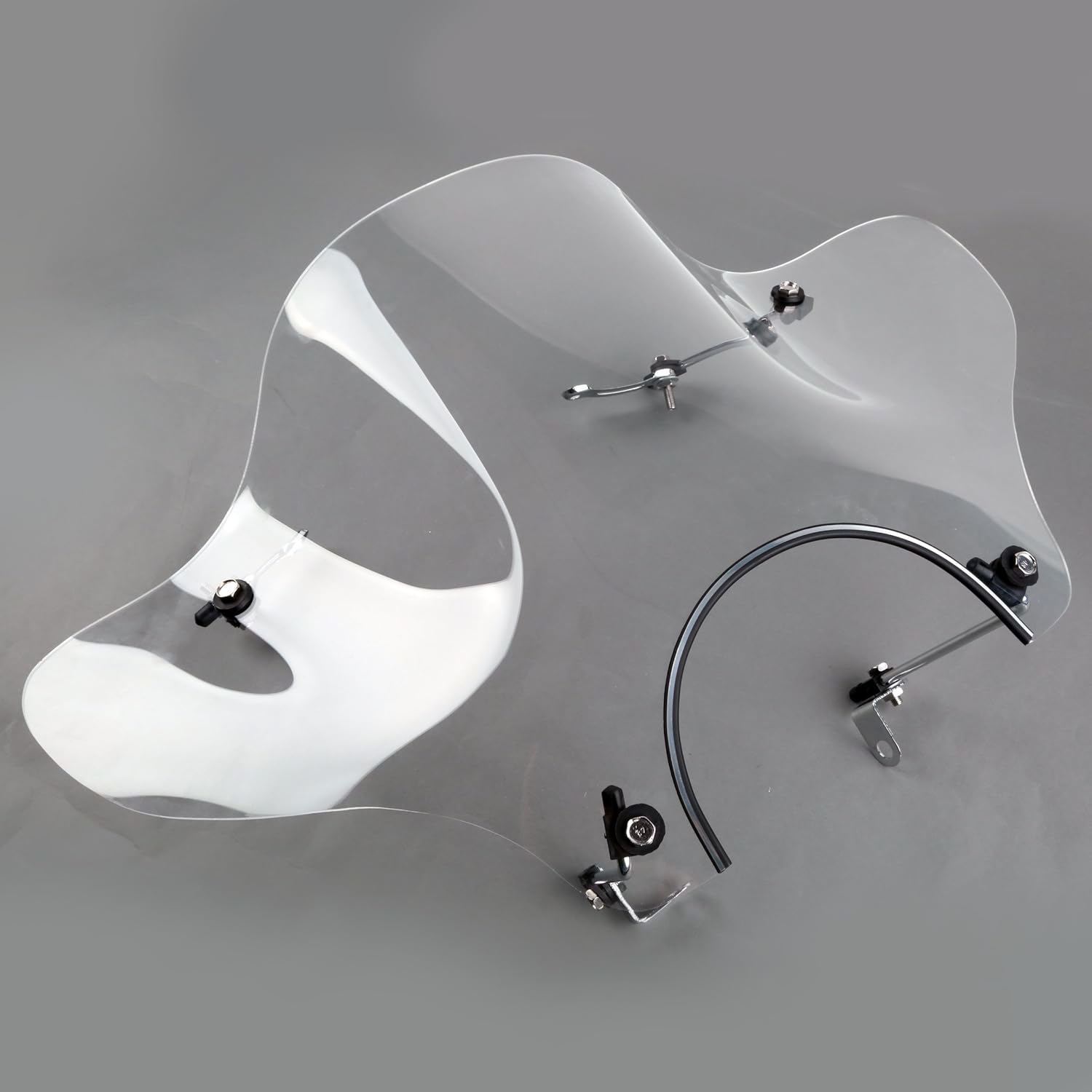 CLEAR CRUISER WINDSCREEN WINDSHIELD FEATURES: Condition: 100% Brand New Color : Clear Size : Detail as Picture showed Material : High Quality PMMA Easy installation, no additional parts are required. Hardware is fully adjustable for height and angle. Note : Please check measurements before purchase to ensure suitable for your car. Compatible :Fit most 250cc cruisers with round headlights and 7/8" standard bar PACKAGE INCLUDED: - A Windscreen(Hardware is included)