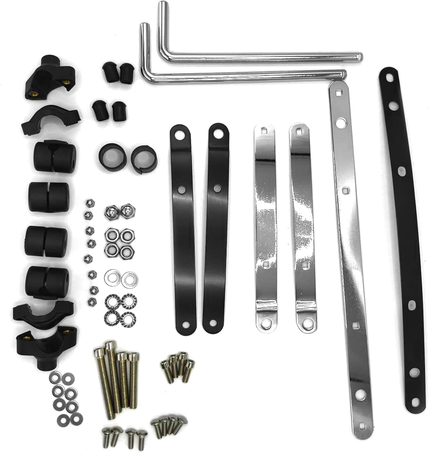 Windshield Replacement for Harley Davidson Honda Kawasaki Suzuki Yamaha V Star 1300 1100 950 650 Motorcycle Windscreen Smoke graySpecifications:Color: Smoke Product dimensions: 15 3/4" x 18 1/8"Fitment:Replacement for kawasaki klx250Replacement for suzuki boulevard c50 m50 c90 m90 s40 m109Replacement for yamaha v star 1300 1100 950 650Replacement for honda vtx1300 1800 ct125Replacement for honda valkyrie 1500 gl1500c 1800 gl1800cReplacement for harley davidson softail sportster xl883 1200Replacement for harley davidson touring model road king, road glide, street glide, electra glideFeatures:Hardware is fully adjustable for height and angleHighly recommended for keeping drivers warm in cold weather. Protects a driver from flying debris and acts as a fairing to deflect wind, rain, mud on the trailEasy to installHardWares are included.