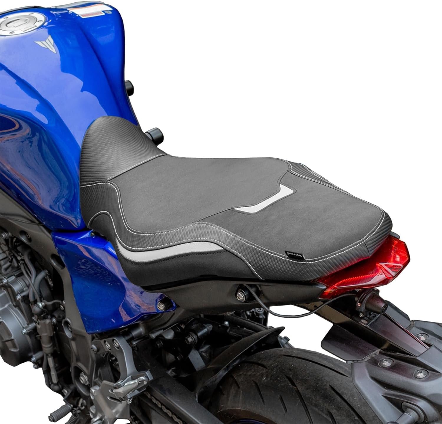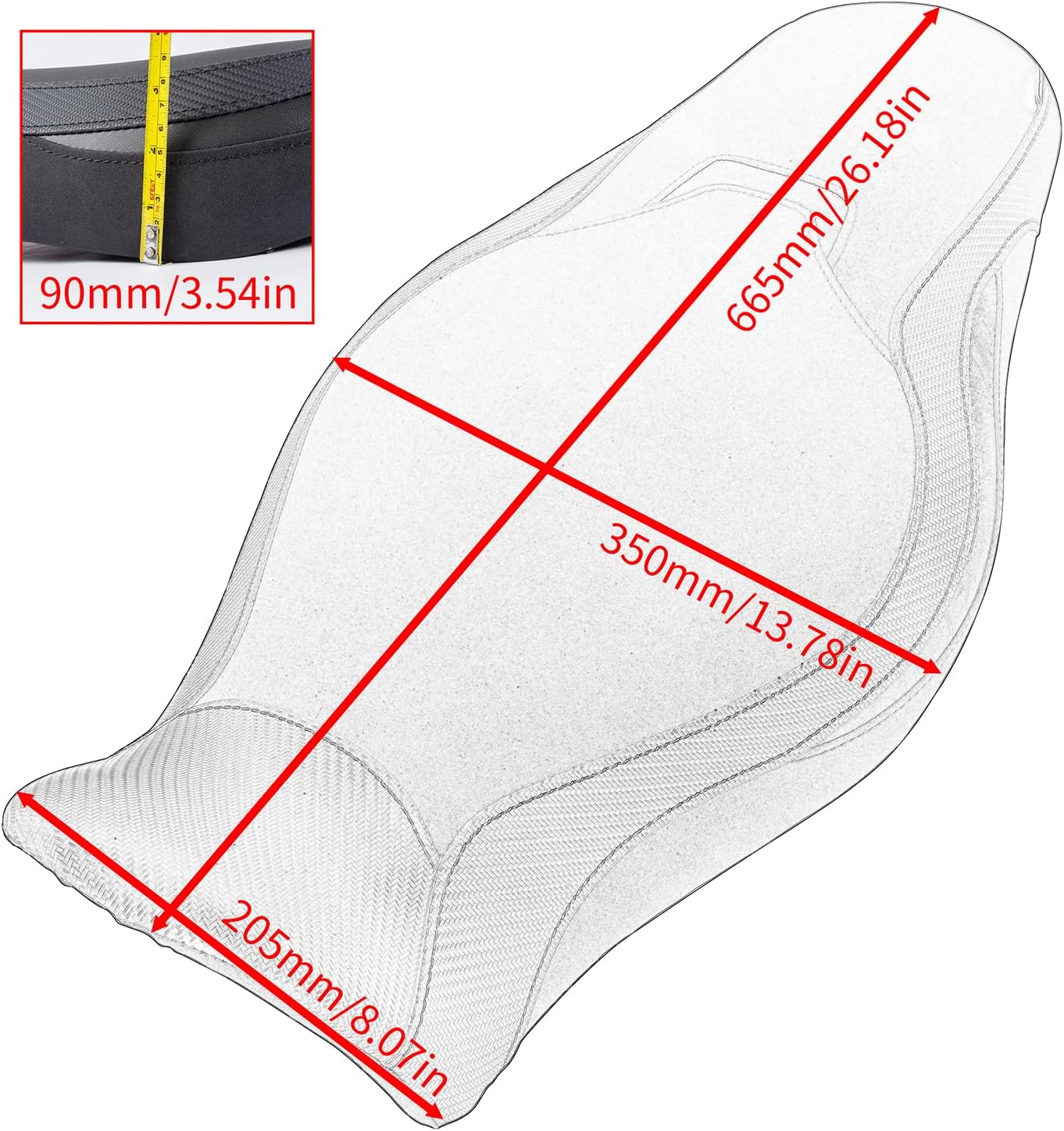 Product Name: Motorcycle One-Piece Seat Complete Saddle Cushion Pillion Pad Compatibility: Compatible with MT-09 MT09 SP 2021 2022 2023 Specification: Material: PU Leather+ABS Plastic+Sponge Condition: Aftermarket 100% Brand New Color: Blue, Black (Optional) Size: Approximately 26.18" x 13.78" (66.5 x 35 cm) Position: Center Features: Easy to install Fuction: Built-in Soft sponge, improve riding comfort for a long haul trip Packing List: 1 Piece Complete Seat Saddle Note: 1. Please compare the size with your original seat cushion carefully before purchasing. 2. Professional installation is highly recommended. 3. Please allow 1-2 cm error due to manual measurement. 4. Our digital images are as accurate as possible. However, different monitors can cause colors to vary slightly.