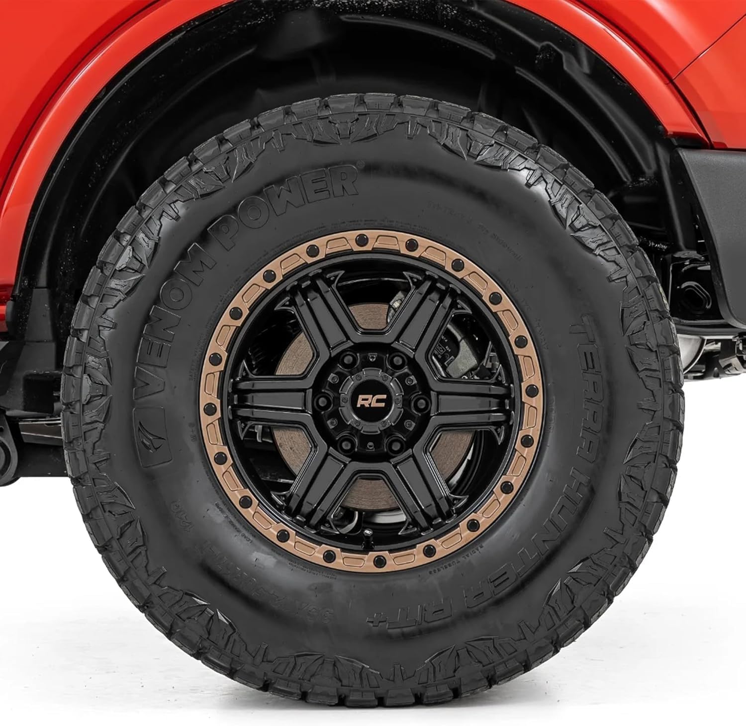 Looking for a wheel that can tackle the toughest trails and look good doing it? Say hello to Rough Country's 79 Series Wheel! Designed for the off-road enthusiast who demands style and performance, this wheel isn't just a pretty face - it's built to handle whatever the trail throws at you.Semi-Gloss Black Finish: This sleek, head-turning finish will make your rig stand out, whether you're tearing up the trails or cruising through town.6-Spoke Design: This design looks rugged and aggressive, but it also offers superior strength and durability for all your off-road adventures.Bronze Outer Lip: The contrasting bronze lip adds a unique touch that sets these wheels apart from the rest, making your ride look as tough as it performs.Single-Piece Aluminum Construction: This wheel is crafted from a single piece of aluminum, making it super strong yet incredibly light. You get the best of both worlds - durability and performance.Rough Country Black Center Cap: Each wheel includes a stylish black center cap with the Rough Country logo, adding that final touch of flair to your setup.Warranty: We value your investment. That's why we offer a 1-year finish warranty and a Limited Lifetime Structural Warranty. With Rough Country, you're not just getting a wheel, you're getting peace of mind.Whether you're tackling rocky trails, muddy paths, or just showing off around town, the 79 Series Wheel is built to perform and look great doing it. Get ready to turn heads and conquer the road with confidence! So why settle for ordinary when you can have extraordinary - because life's too short for boring wheels.