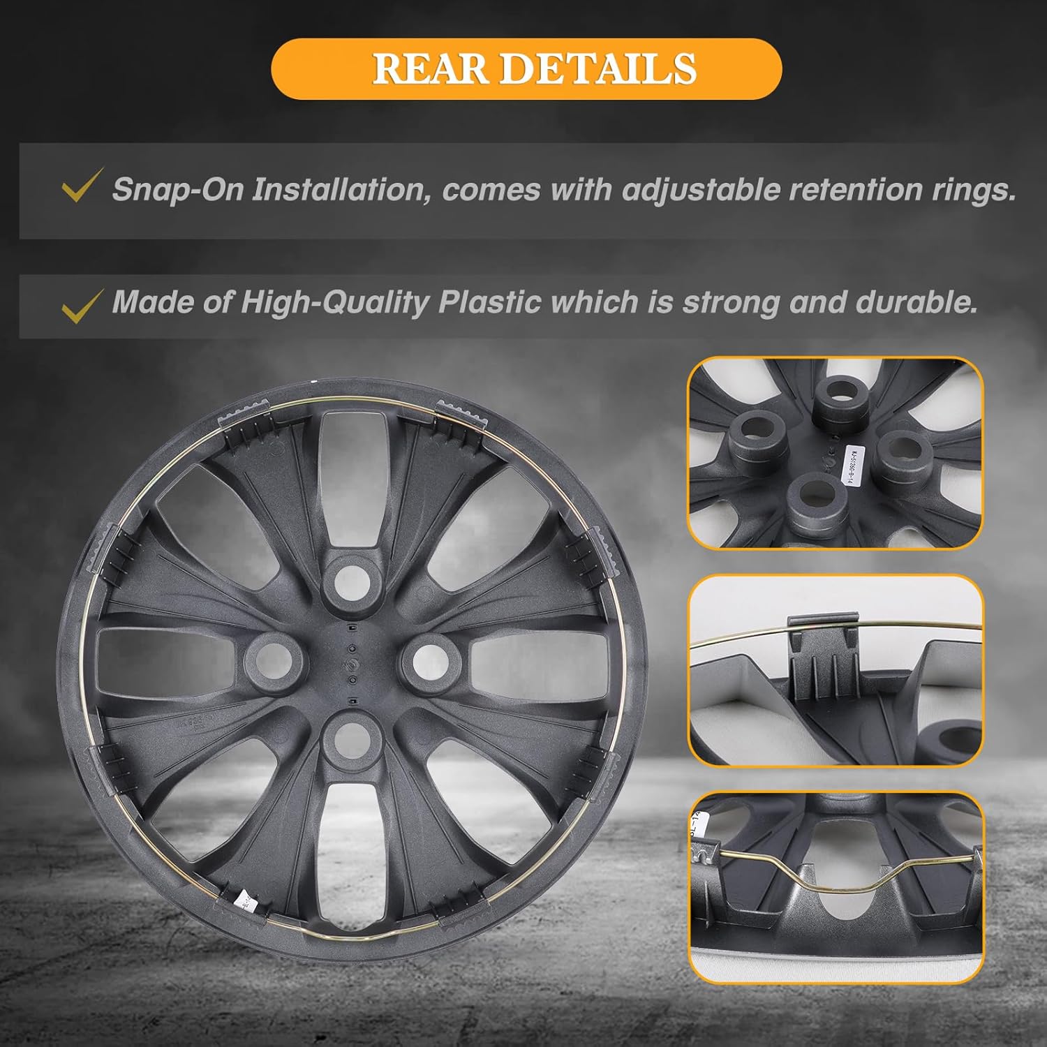 【SPECIFICATION】Type: HubcapsColor: Silver LacquerMaterial: PPCompatible Wheel Size: 14 InchFinish: Lacquer FinishInstallation Type: Snap-OnFitment: Specific for 2012-2017 HYUNDAI ACCENT SEDAN/HATCHBACK【PACKAGE INCLUDED】Set of 4 hubcaps【NOTICE】To save your precious time, please ensure the size, color, and other information before making a purchase. If you have any questions, please feel free to contact our customer service at any time.【FEATURES】Our products feature PP materials, renowned for their exceptional strength and impact resistance. These qualities make PP ideal choices for automotive applications, providing robust and reliable performance. The durability of these materials ensures that our hubcaps can withstand the rigors of daily driving, offering long-lasting protection for your vehicle's wheels. Additionally, the inherent resilience of PP contributes to the sleek aesthetics of our hubcaps, enhancing the overall appearance of your vehicle.【ABOUT US】Autopart Online is an experienced auto parts supplier, offering a wide range of premium OEM replacements and modified parts. Our team of professional technicians conducts extensive research and development to ensure the compatibility and performance of our products with various car applications. We are dedicated to helping you enhance your car's aesthetics with simple, functional, affordable, and trendy products.