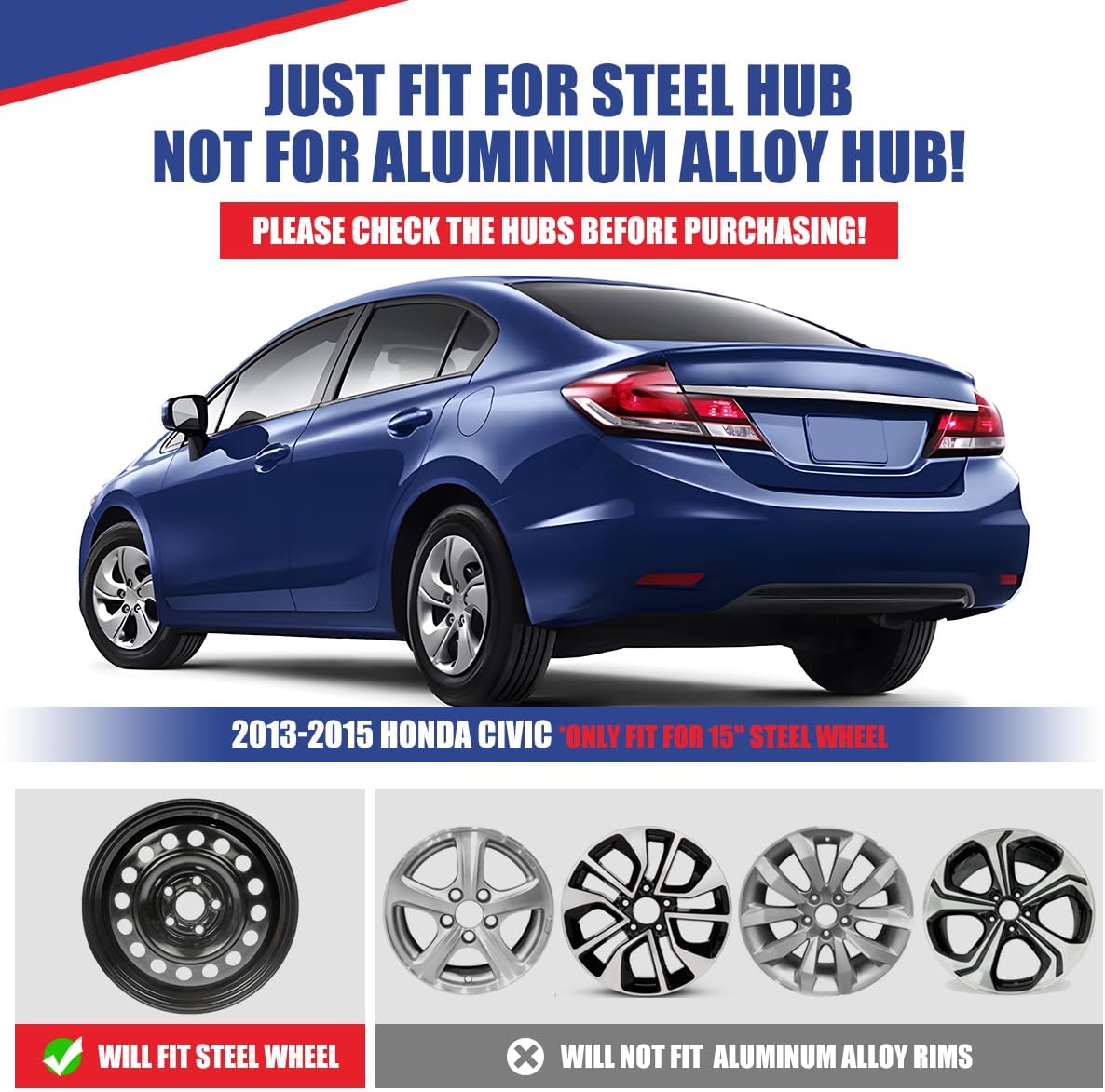 | Included Components | 15 Inch Hubcaps for [2013-2015 Honda Civic] |