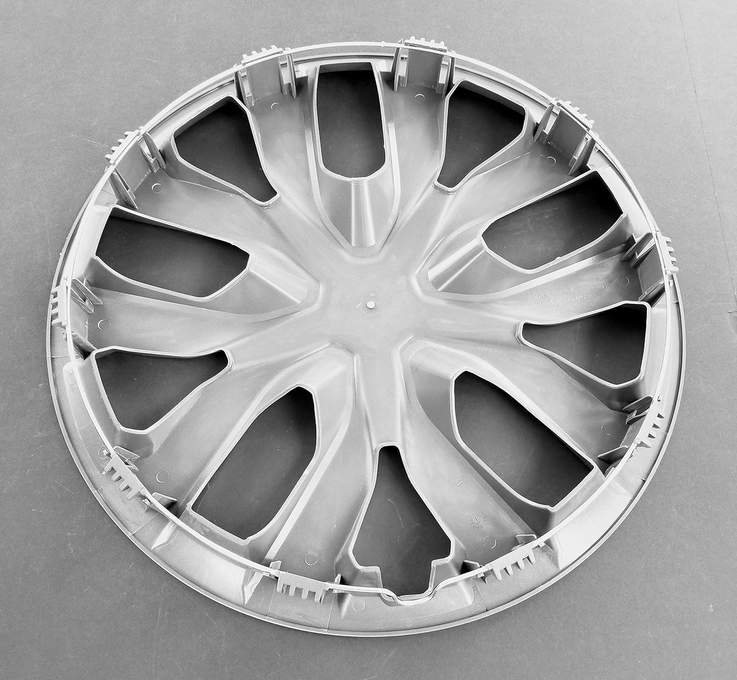 Product care, regular vehicle cleaning of dirt, grime or salt twice a month, year round. Appling a high-quality wax to help protect and maintain the finish of the product is recommended. Use only non-abrasive automotive wax. Use of any soap, polish or wax that contains an abrasive is detrimental and can scratch the finish leading to corrosion. Do not use harsh cleaners or chemicals that could damage the finish. Failure to keep your product clean may result in pitting and or peeling. Wheel Diameter (IN): 17 Inch Design: 10 Spoke Finish: Gloss Painted Color: Silver Material: Plastic (Acrylonitrile Butadiene Styrene ABS) Compatible With Steel Wheels: Yes Retention: Snap-On Factory Center Fits In Cover: No Quantity: Set Of 4