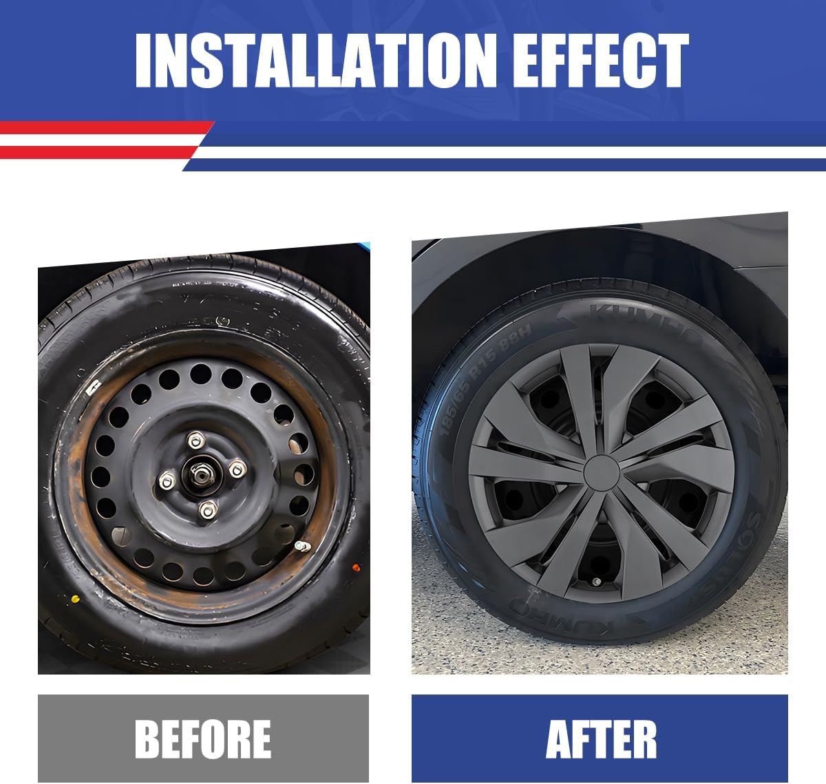 🚗Compatible with: ✅Only Fit For 2007-2025 Nissan Versa 15" Steel Wheel ❌❌Not for Aluminium Alloy Hub! 👉Please check the hubs before purchasing 👉look for the rim size (diameter) in car tire 👉check digits after "R" letter is 15 NOTE: Not fit for 2009-2011 VERSA SEDAN 14 inch steel wheel model(1.6 engine) 🔥Specification 💛Color: Black Matte 💛Materials: PP 💛Size: 15 Inch 💛Package: set of 4 💛Special Features: Adjustable buckle design 🚘About WolfX 💛We are a professional auto lamps manufacturer, WolfX have more than 20 years of experience in the manufacture of automotive lightingproducts. 💛We has more kinds of products, main include Headlights, Tail lights, Fog lights, Automotive Accessories and more. 💛All WolfX automotive lightingproducts are compliance with DOT and SAE, Meet all regulations in U.S. and international standards. 💛WolfX offers 30-day returns and a 12-month warranty. Once there is a problem with the product, please contact us immediately to solve the problem for you. 💛We have a warehouse in the US, and the products are stored in the US warehouse.