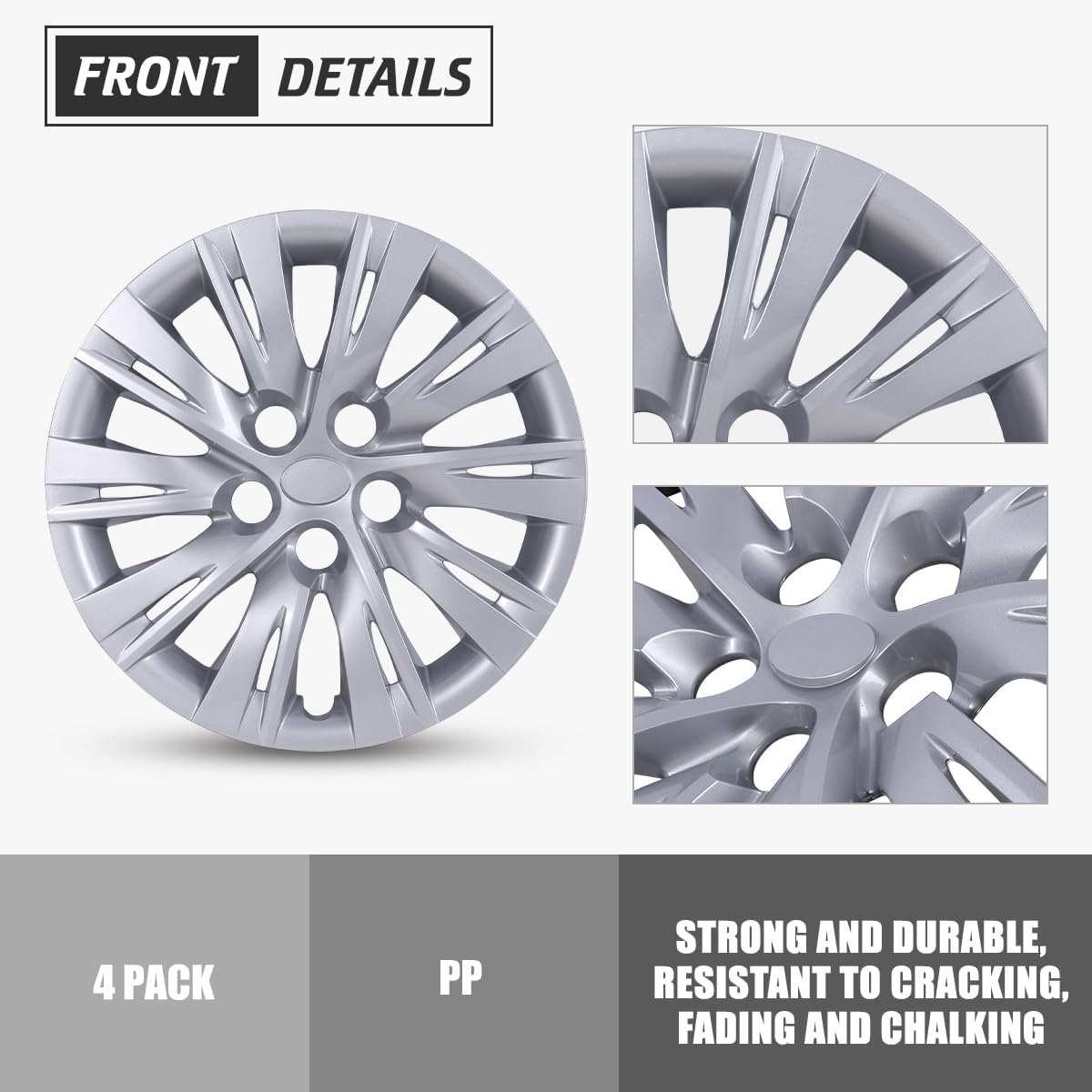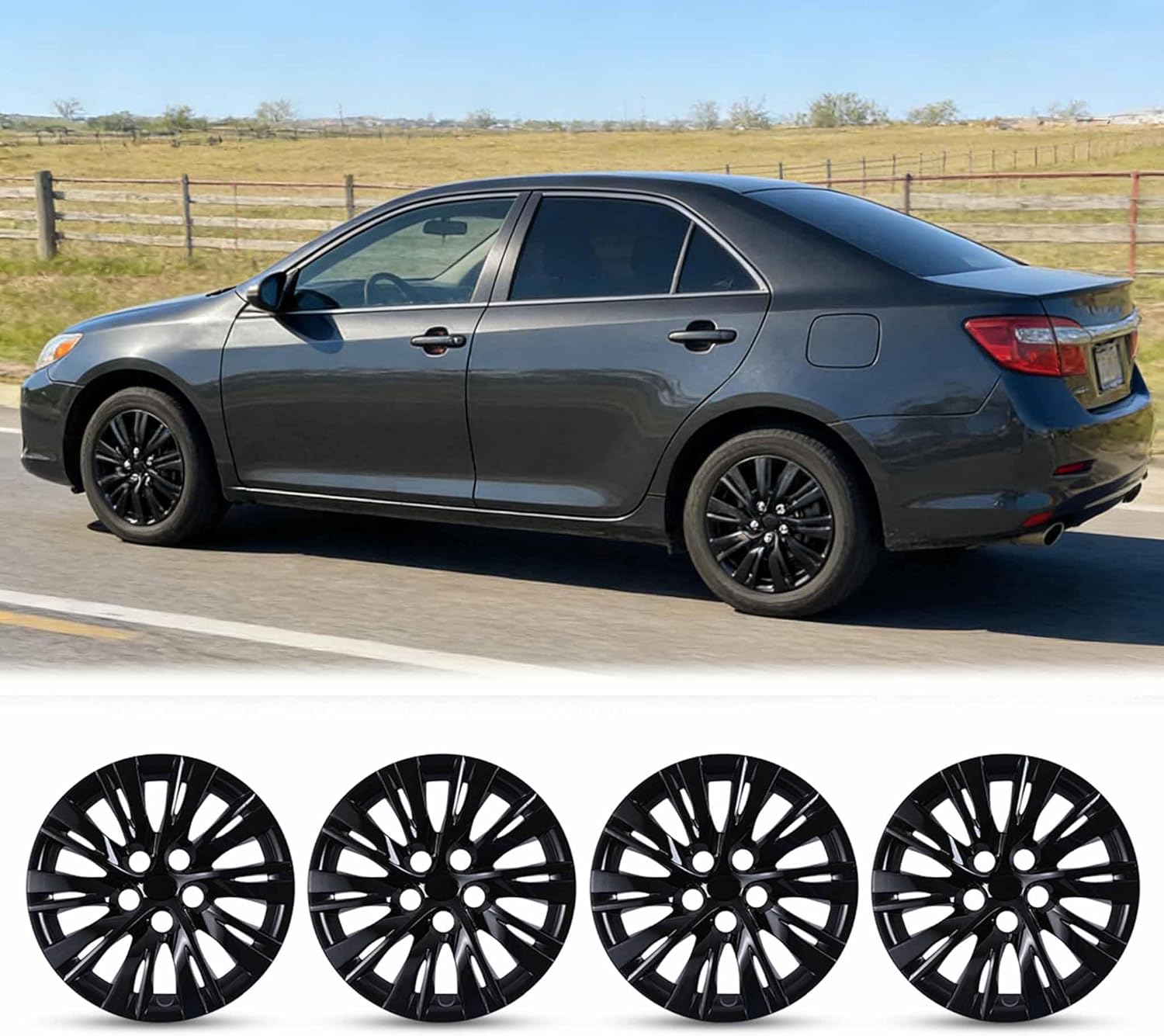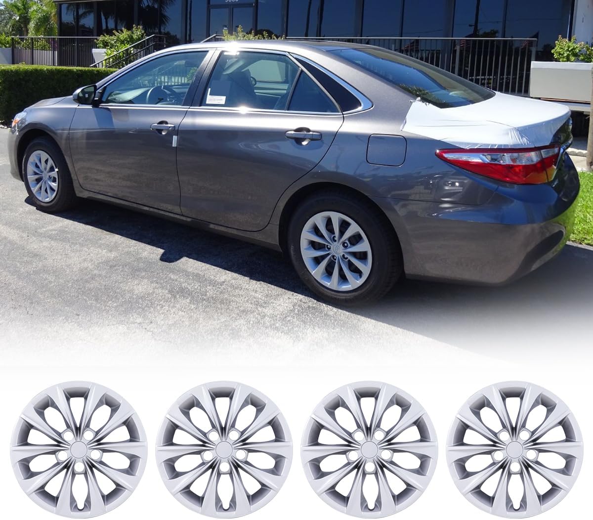 💓Specifications:Compatibility: (2012-2014 Toyota Camry / 2012-2014 Toyota Camry Hybrid)✅2012 Toyota Camry✅2013 Toyota Camry✅2014 Toyota Camry✅2012 Toyota Camry Hybrid✅2013 Toyota Camry Hybrid✅2014 Toyota Camry Hybrid❗❗NOTE: Only Fit Steel Wheel⚠️❌Not for aluminium alloy hub!! ❌⚠️💛Please check the hubs before purchasing💛Check digits on tire after "R" letter is 16 (R16)💛Ensure this item will properly fit your vehicle wheels, thanksMaterial: ABS MaterialColor: SilverFinish: LacquerSize: hubcaps 16 inchInstallation: Snap-on💡Maintenance Tips: Clean regularly with mild soap and water to maintain the glossy finish.🚗Enhanced Protection: Protect your wheels from scratches, dents, and UV damage with these durable and stylish hubcaps. The ABS material ensures long-lasting protection.🚗Quality Assurance: We use high-quality materials and manufacturing processes to ensure our hubcaps are built to last. Each product undergoes rigorous quality checks to ensure durability and performance.