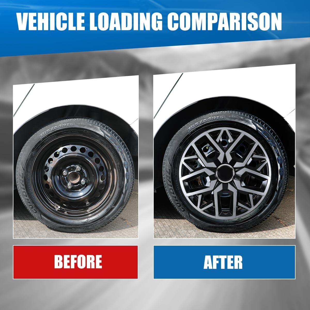 Compatible Wheel:14'' Universal Hubcaps for Steel Wheel Rims CoverNote: Not fit for Aluminium Alloy HubNot fit for 1997-02 SATURN S SERIES COUPE 14 Inch Steel WheelNot fit for 1991-95 SATURN S SERIES SEDAN/WAGON 14 Inch Steel WheelNot fit for 1991-96 SATURN S SERIES COUPE 14 Inch Steel WheelNot fit for 1996-02 SATURN S SERIES SEDAN/WAGON 14 Inch Steel WheelNot fit for 2000-07 FORD FOCUS 14 Inch Steel WheelNot fit for 2000-07 FORD FOCUS 14 Inch Spare Steel WheelFeature:Material: High-Strength PP PlasticColor: Black Lacquer & Silver LacquerInstallation: Snap On installation with retention ringsPackage IncludesOne set of 4 Hub caps