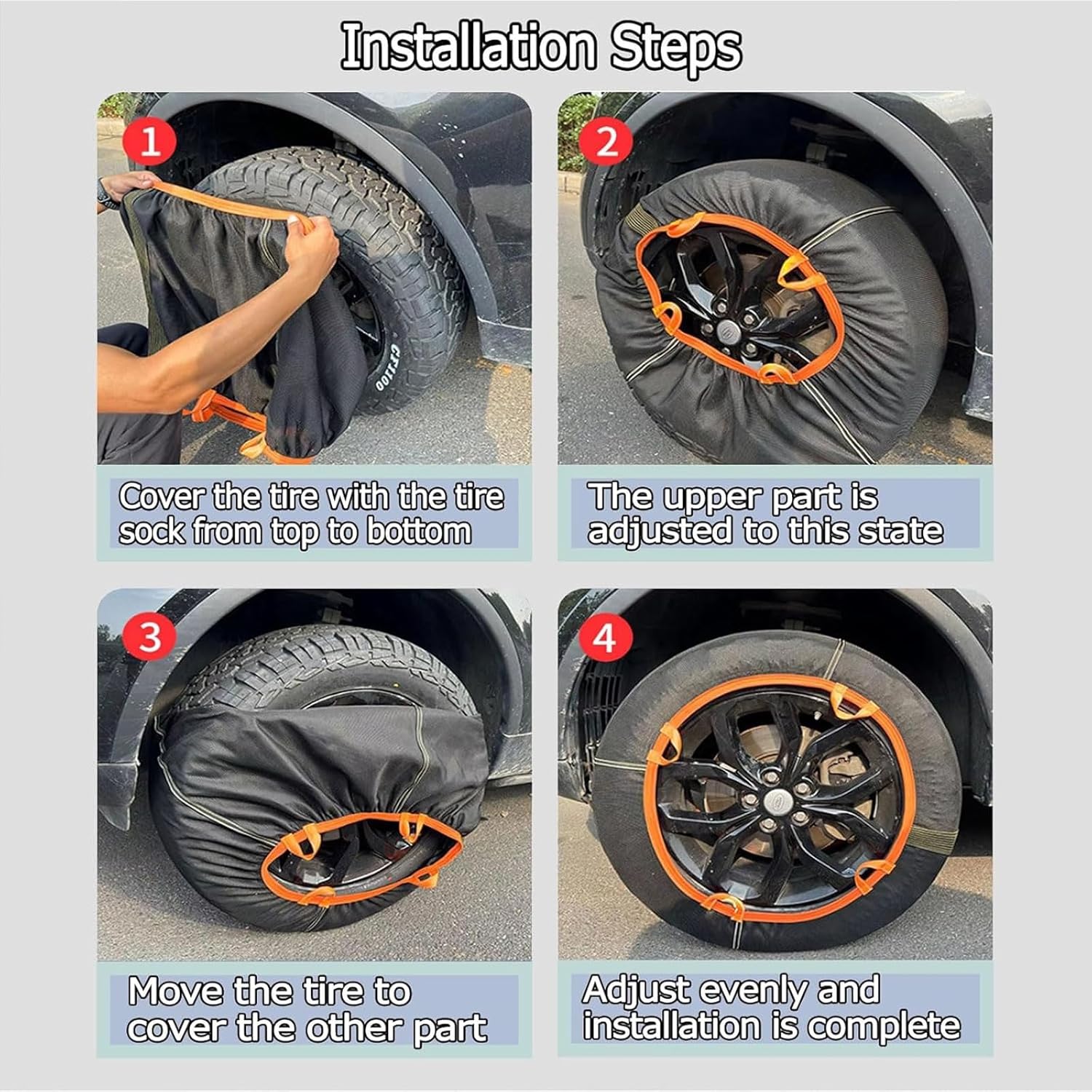 Please check the size of your vehicle's tire before purchasing1. Versatile accessory - Maximum speed up to 25 mph / 40 km/h. Withstands low temperatures of - 50 ℃. This tire cover is suitable for cars, SUVs, semi-trailers, trucks, RVs and ATVs. Our snow chains have strong grip and excellent functions, perfect for snow, mud or ice.2. Durable material, durable. Its elastic material reduces turbulence and noise, ensuring maximum traction, durability and life.3. Easy and fast installation - It only takes a few minutes to install this tire cover without removing the tire or moving the vehicle. Its lightweight and easy-to-carry design makes it convenient for travel.Specification:Name: Snow Socks for Car TiresMaterial: PolyesterWeight: about 1.5kgPackage Includes:2 * Snow Tire Cover1 * Pair of Sleeves1 * Pair of Gloves1 * Storage Case
