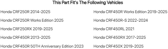 | Compatible with Vehicle Type | Off Road Motorcycle |