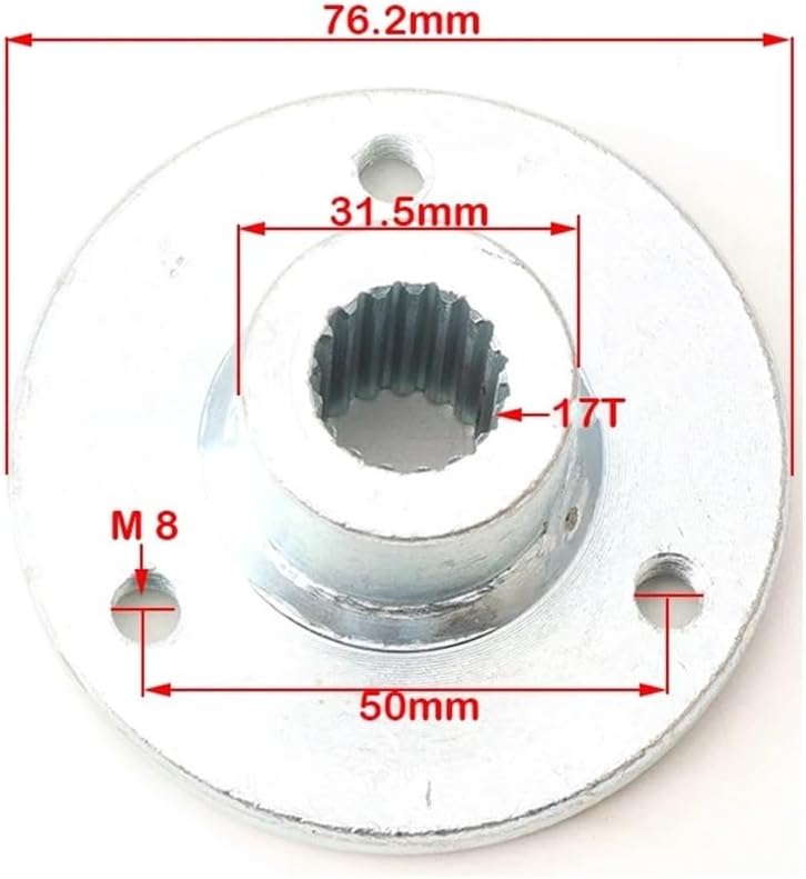 Material: Metalwith a 17T hub shaft tooth number, a bearing bore diameter of 17mm or 24mm, and a hub mounting hole spacing (center to center) of 50mm.Package Included:1 x Rear Wheel HubSpecial Features : Rear Wheel HubItem Diameter : 2.4cmItem Weight : 0.4kgItem Height : 3.5cmItem Width : 7.5cmItem Length : 7.5cmModel Name : 17T/ 23TOrigin : Mainland ChinaMaterial : Metal
