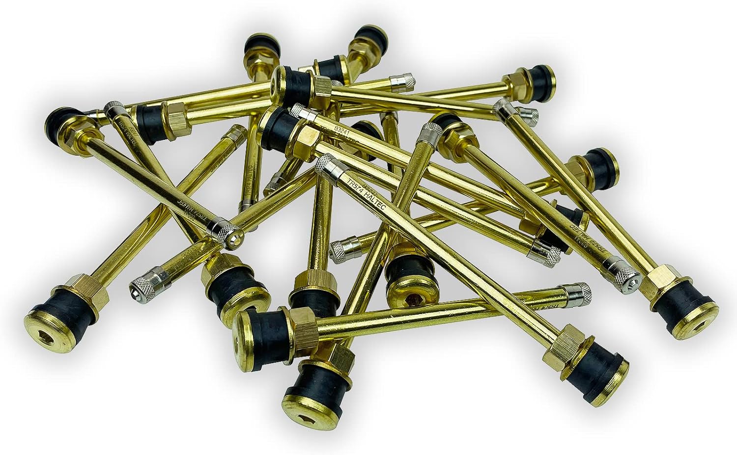 Haltec's TV-574A straight brass clamp in tubeless valve stems are rigorously tested and designed for use in commercial applications. These fit all standard 5/8 inch (0.625 inch) valve stem holes and are 5 inch inches long. Haltec's TV-574A valve stems are equipped with EPDM grommets that are formulated and manufactured in the USA along with high temperature valve cores.