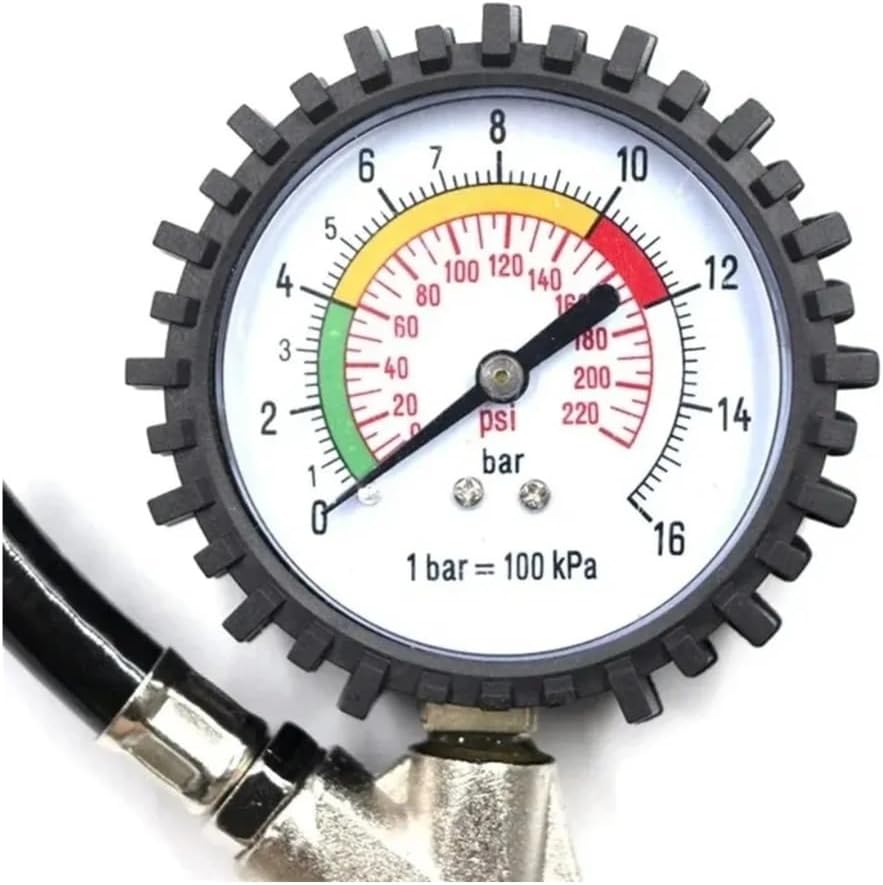 220PSI Car Motorcycle Multifunctional Tire Pressure Monitoring Gauge Tester Compressor Meter Inflator Pump ToolsFeatures:The tire pressure gauge has a function of deflation, inflation, and tire testing.Self-locking chuck, easy to connect.Durable, shockproof rubber protective cover, high precision tire pressure gaugeThick , thick explosion-proof tube, lifeSuitable for all kinds of small and medium-sized vans, cars, motorcycles, etc.Specifications:Specification: EuropeanMaterial:zinc alloyWeight: 0.3kgColour: blackPackaging includes:Mechanical Analogue Tyre Pressure Gauge*1Notice:1. Due to the difference in display, shooting light and environment there will be some color difference between the actual color and he picture color, which is normal.2. Due to manual measurement, the size of the product may have 0.5-1cm difference.High-concerned chemical : NoneOrigin : Mainland China