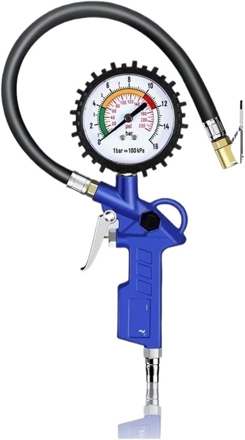 Fumbling with blurry mechanical gauges (especially in dim light) or juggling separate inflators/gauges makes tire maintenance a hassle. Plus, incorrect tire pressure shortens tire life and risks driving.This LCD display 3-in-1 tire pressure gauge solves those frustrations with practical, user-friendly design:Clear, Instant Readings: The LCD digital display eliminates squinting at tiny mechanical dials — get precise 0-220PSI pressure readings at a glance, even in low-light spaces (like garages or evening roadside checks).All-in-One Convenience: Skip the scattered tools — this single device measures tire pressure, inflates (when paired with an air compressor), and deflates over-pressurized tires. No more digging through a cluttered tool kit for quick top-ups.Fits Your Gear: It works seamlessly with standard air compressors (home or portable) — no special adapters or extra costs to match the equipment you already own.Focused Precision: Accurate readings let you set your car’s tires to the exact pressure recommended by your vehicle manual, avoiding under/over-inflation to tires and stay safe on the road.Built for Daily Use: The sturdy pneumatic construction stands up to regular checks and top-ups, making it a reliable go-to for routine tire maintenance.