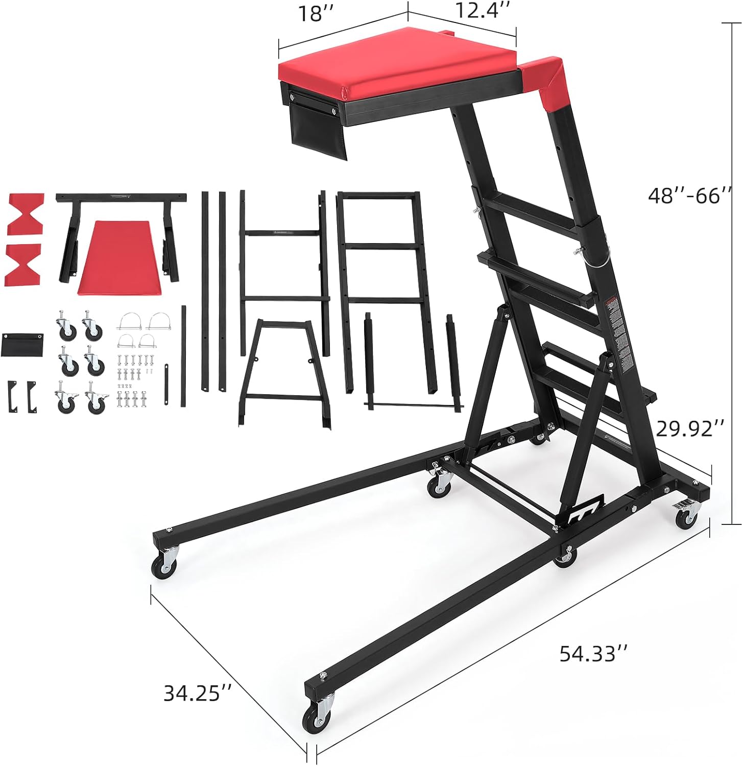DEXSO Topside Automotive Engine Creeper, Adjustable Height from 48" - 66", 400LBS Capacity Foldable Top Side Creeper for Home Garage Workshop Repair Maintenance,Black