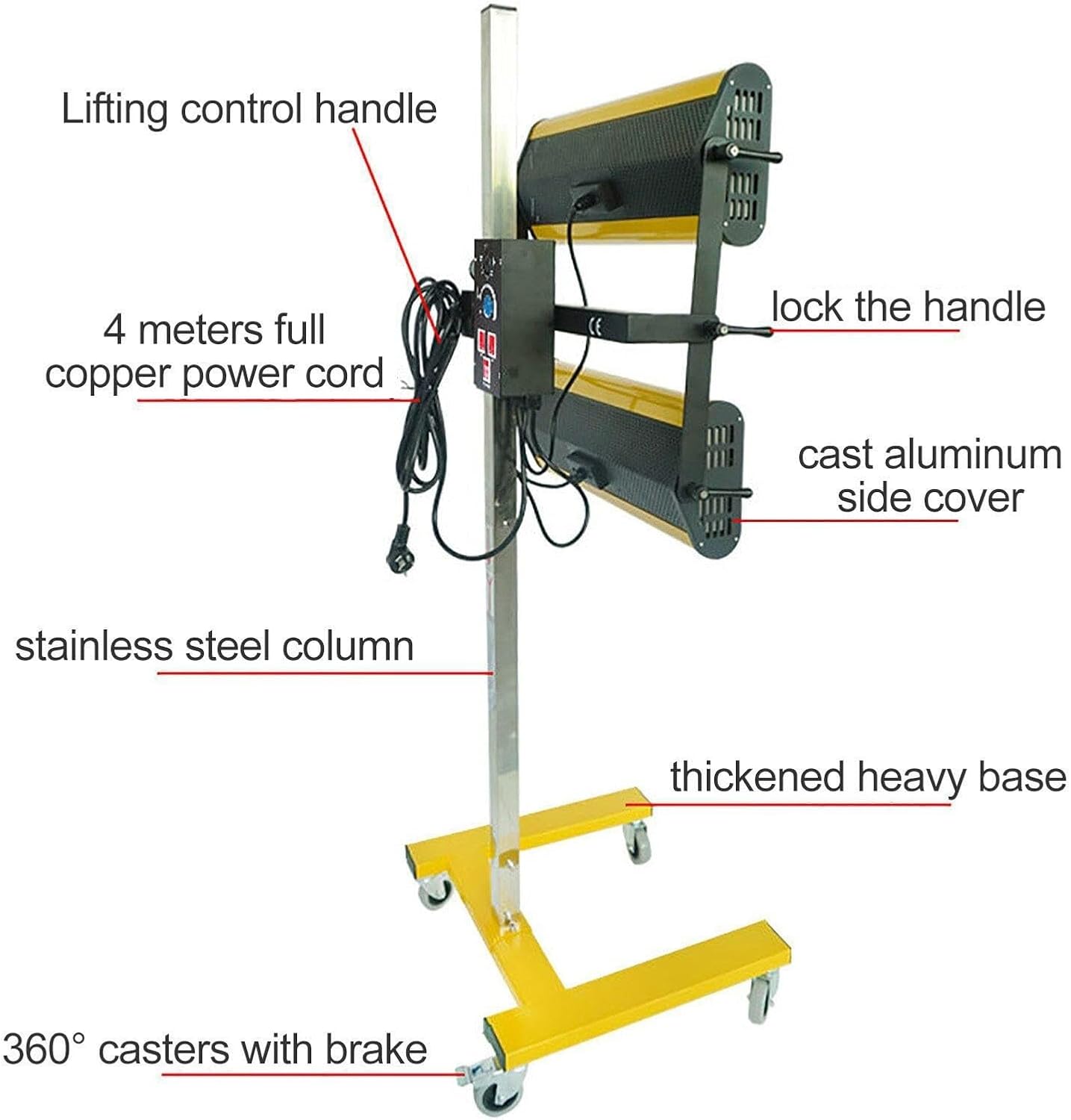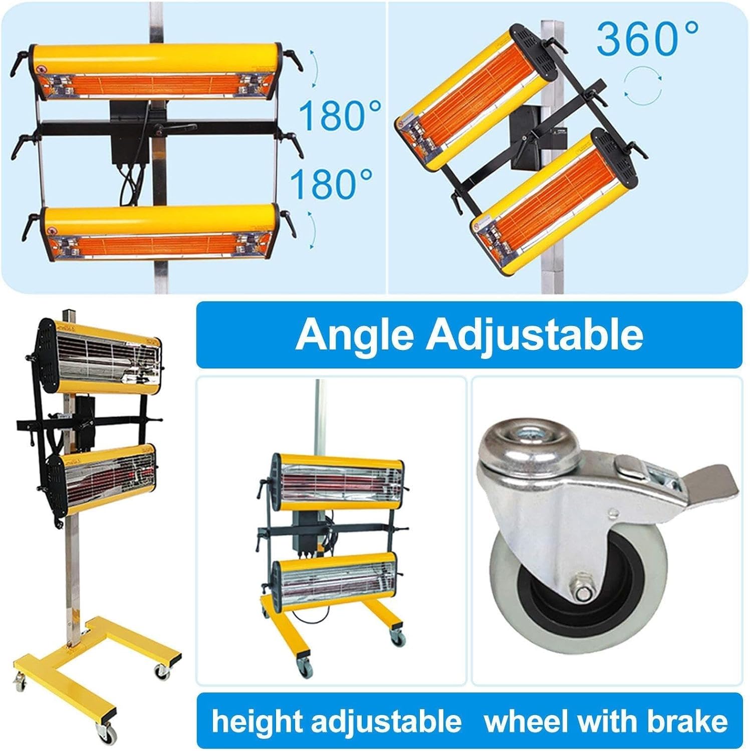 Powerful and efficient Dryer Lamp 2x1050W, designed to penetrate deep into the inner paint layer for optimal results. With a quick drying time of 15 minutes for two component paints and just 5 minutes for polyester putty, this dryer provides fast and effective performance. Easily adjust the distance for perfect drying and utilize the pre-heat and full baking function for gradual temperature increase,providing a long life span of up to 6000 hours. The package includes 2 Dryer Lamps, 1 Stand, and an English Manual. Get yours today and experience professional-grade drying results.