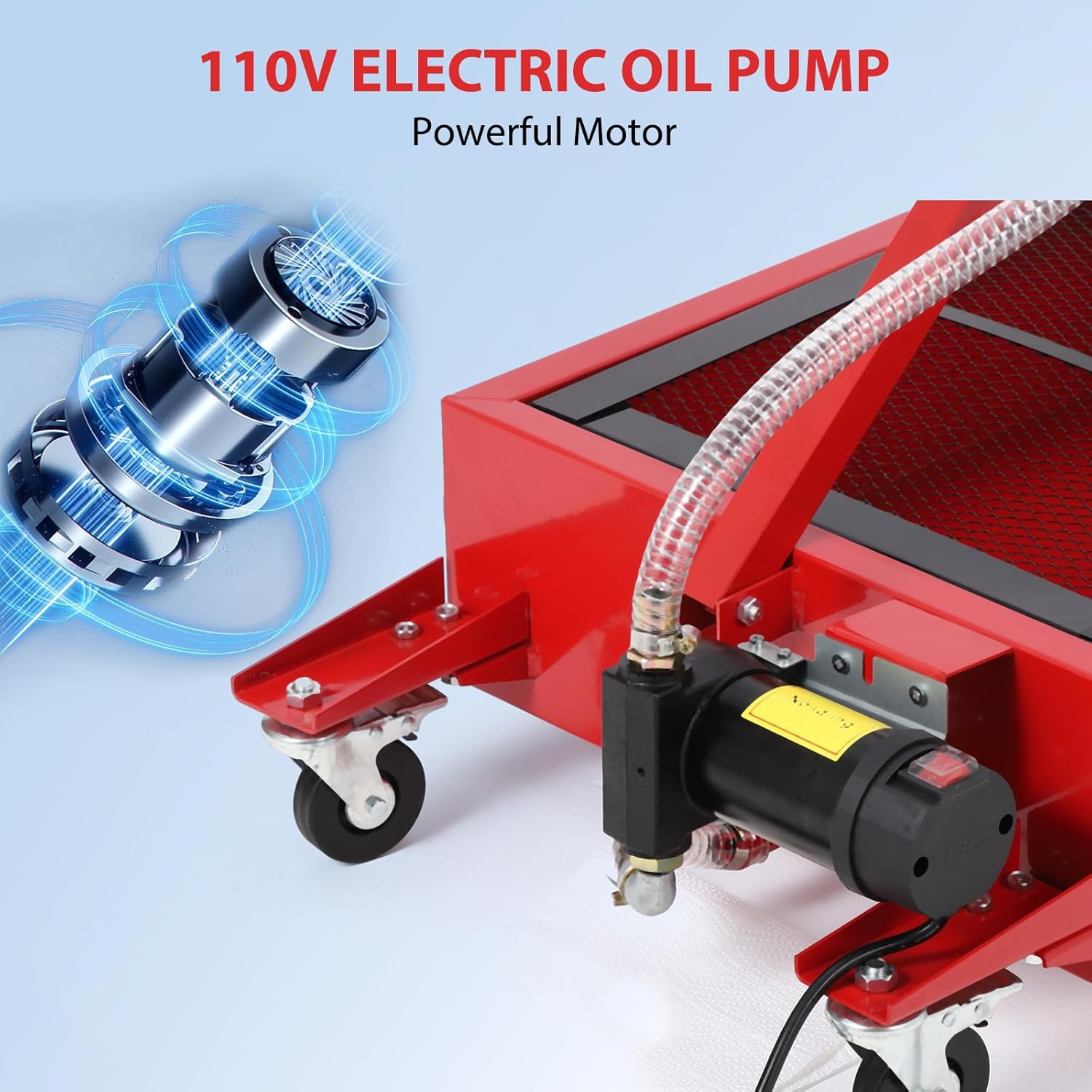 20 Gallon Oil Drain Pan Oil Drain Tank with 12V Electric Pump, Oil Change Pan with T Foldable Hand and Wheels, 8FT Hose Oil Drain Cart for Car, SUV, Trucks
