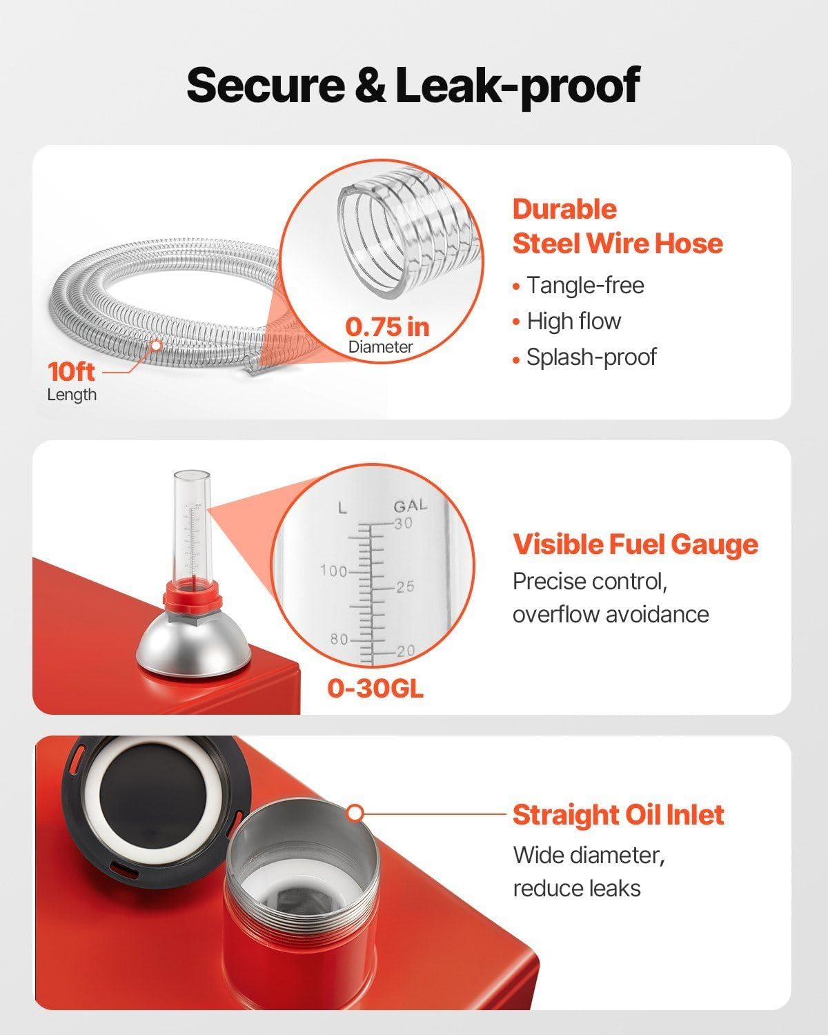 30 Gallon Gas Caddy, Max Flow 32L/min, Diesel Tank with Electric Pump, Diesel Storage Tank with 2 Wheels & 10 ft Hose, Gas Container for ATV, Car, Mowers, Boat, Motorcycle, and More, Red