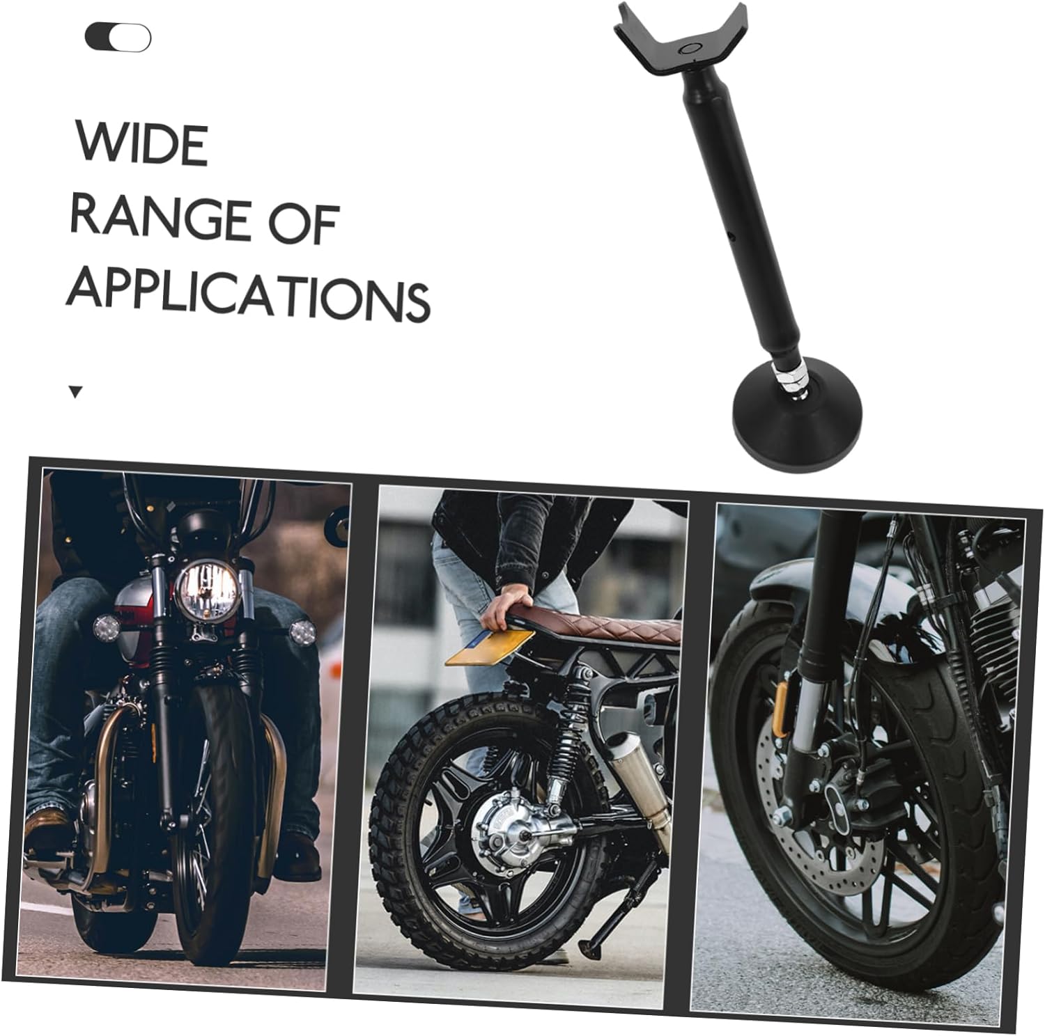 Package Include 1 x lift jack 1 x screwdriver Characteristics -Secure stand: acts as a stable parking stand, ensuring your motorcycle remains upright and secure when parked motorcycle chock -Sturdy construction: built from sturdy metal, this stand is designed to be durable and provide reliable support for your motorcycle wheel chock motorcycle -Color:Black motorcycle stand front -Material:Iron motorcycle trailer wheel chock -Size:29.00X8.00X8.00cm/11.40X3.14X3.14in motorcycle lift -Dual wheel support: suitable for lifting both front and rear wheels, making it a versatile tool for all your motorcycle maintenance needs motorcycle wheel lifting support -Compact and portable: the foldable design makes it easy to transport and store, ideal for use or on the go motorcycle liftsotorcycle lift -Height range: 240-370 mm motorcycle rear wheel lift -Easy lifting: mechanism is designed to make lifting and lowering your motorcycle a breeze, reducing the physical strain on the user motorcycle front standGoods Descriptionwheel lifting tool The portable design ensures you can take it anywhere, while the foldable structure allows for compact storage.motorcycle rear wheel bracket This stand is ideal for lifting both front and rear wheels, providing a stable platform for repairs.motorcycle rack Made from excellent metal, it offers exceptional durability and support, ensuring your motorcycle stays safe and secure.motorcycle front wheel chock Enhance your motorcycle maintenance routine with our reliable lift jack