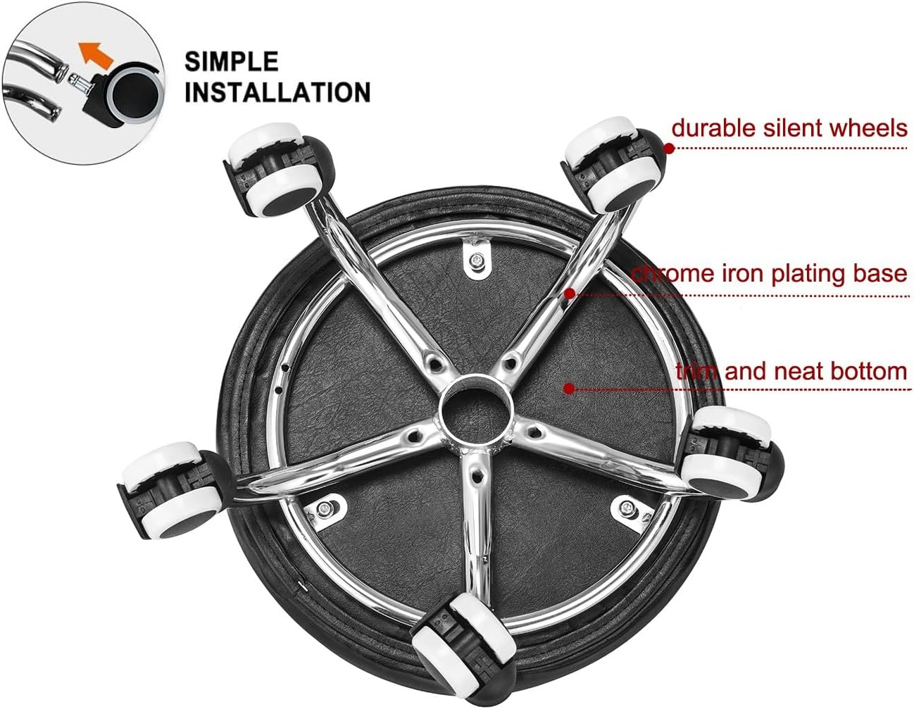 | Assembly Instructions Description | Easy to assemble in less than 1 minute with 2 parts: seat cushion base and 5 wheels. |