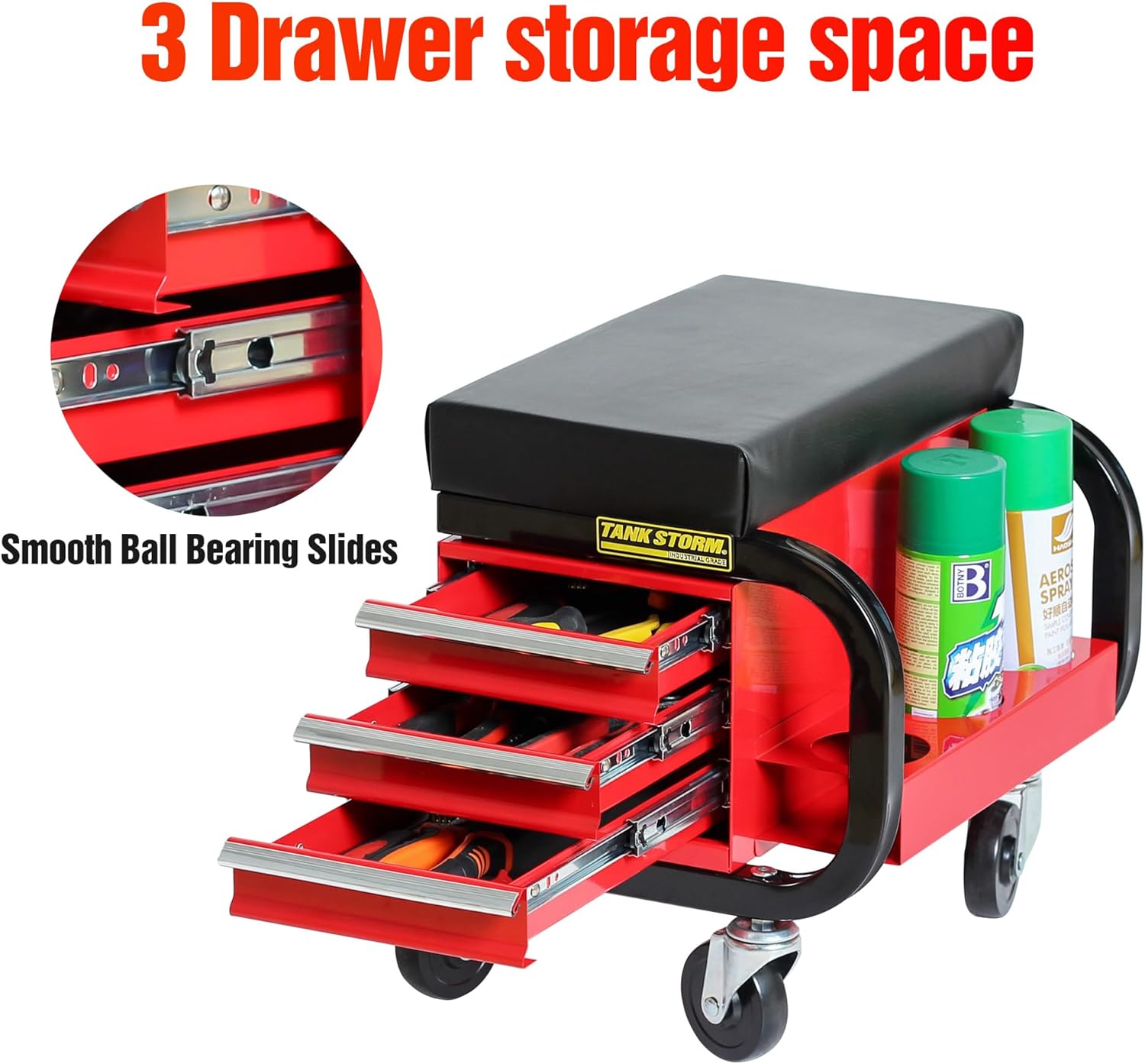 | Storage Options | 3 drawers, front and back tool trays |