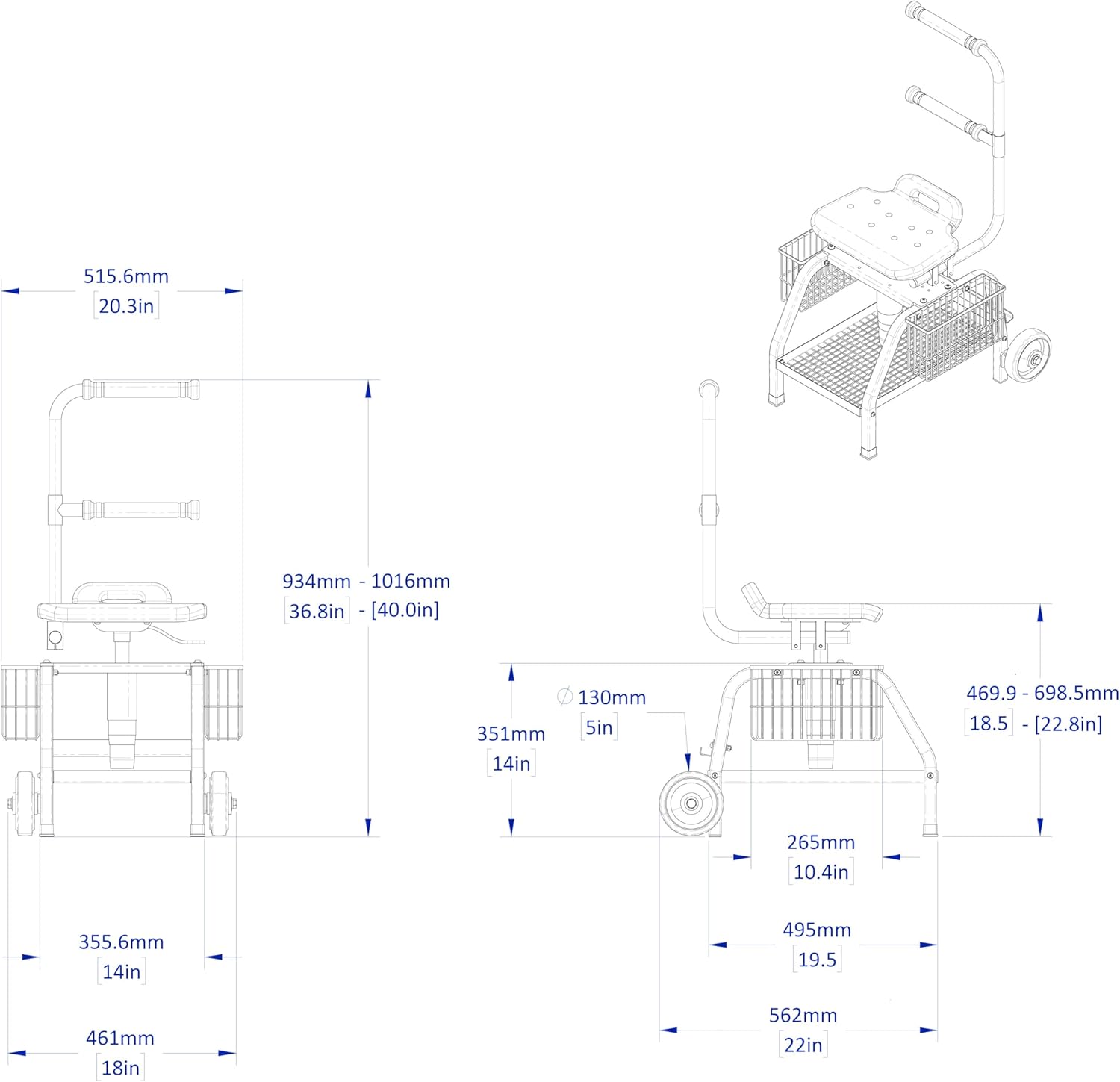 | Model Name | Work Rover Stool w/ Backing, Two Rolling Wheels |