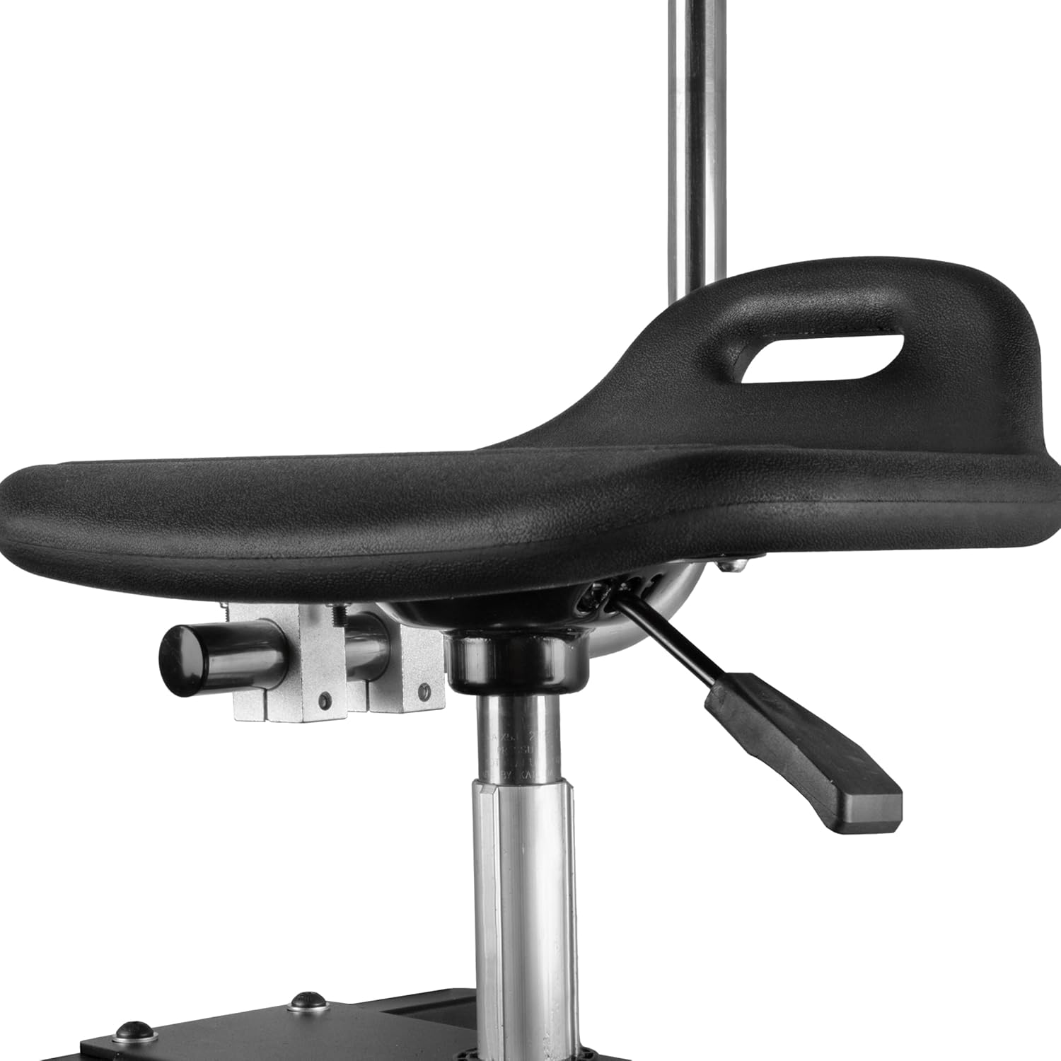 Engineered for demanding work environments like weld shops, manufacturing floors, and fab stations, the WRA100 combines rugged construction with functionality. Its steel-tube frame features a supportive back bar and a swiveling armrest that doubles as a welding assist or gear perch. The cushioned stadium-style seat is height-adjustable via a gas cylinder for personalized comfort.