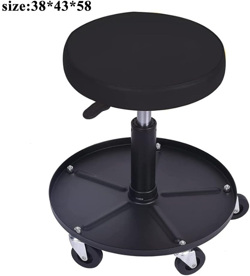 The garage stool is a perfect choice for repairing or cleaning vehicles, furniture, and other low projects. You can use it anywhere you need, such as garages, roadsides, homes, etc. Work anywhere, comfortably! pecifications Product name: Pneumatic repair bench Color: Black Use: Repair stool tool bench Appearance size: 38 * 43 * 58 (cm) Weight: 5.4 (kg) Material: iron Scope of application: auto repair tool stool, repair shop, garage Size: 38 * 43 * 58cm Net weight: 5kg Number of kits: 1 set Shape: As shown Function:Water proof and easy to clean Type: low stool roller with wheels About the size and color difference: the size of this product are manually measured, there may be 1-2cm error; each of our pictures are taken in kind, due to the light and shooting mention the angle of the reason, the monitor and other issues, the picture and the real thing may have a little color difference, please take the received object prevail.