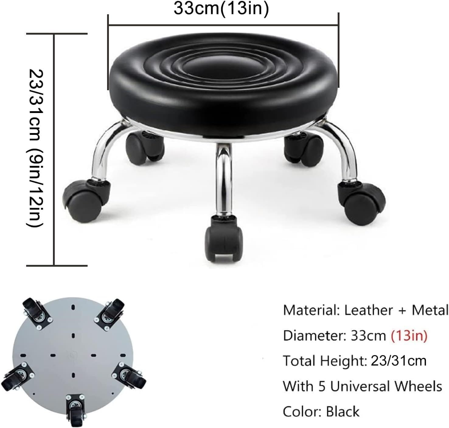 Swivel Pedicure Stool Step Stool Low Rolling Stool Rolling Kitchen Stool Draft Stool (Black) ,9 inch Height Holding 330 lbsFeathers:A heavy five leg steel frameUniversal rotating wheelRubber bearingSturdy plastic wheel will not damage your floorHigh density spongeFixed only 9 inch heightHolding 330 lbs at leastSuitable for camping,home and kitch,office and some operational requirement of low worksSpecifications:1.Product size:33x23cm, 33x31cm2.Net weight: 3kg3.Color:Black, red4.Weight capacity:330 lbs at least5.Fixed Height:9 inch6.Wheel type: Plastic with reinforced nylon7.Package quantity: 1pc stool + 5 castersSatisfactory Service: We provide quality products and professional customer service. If you have any questions about our products or our services, please feel free to contact us and we will get back to you within 24 hours.