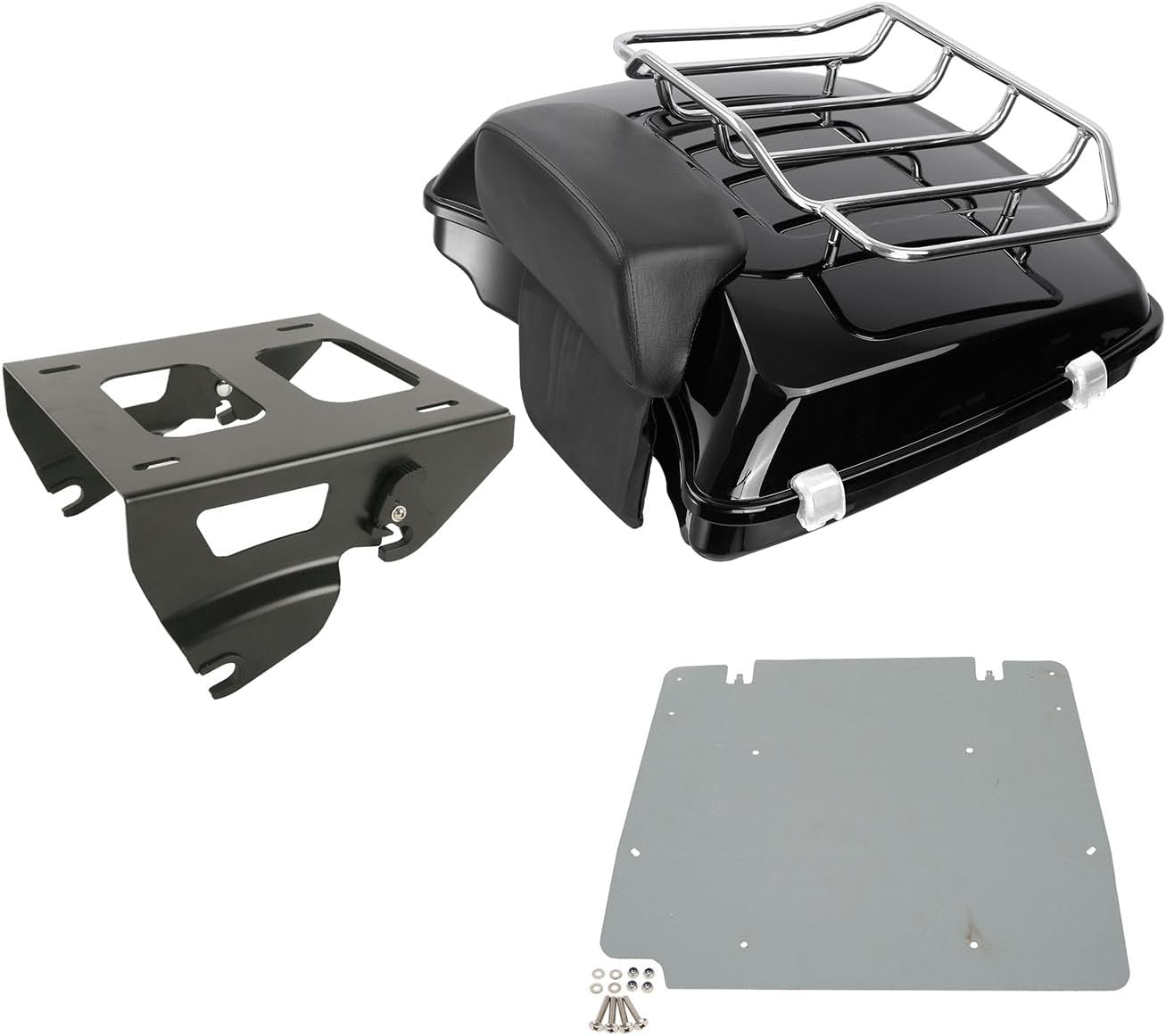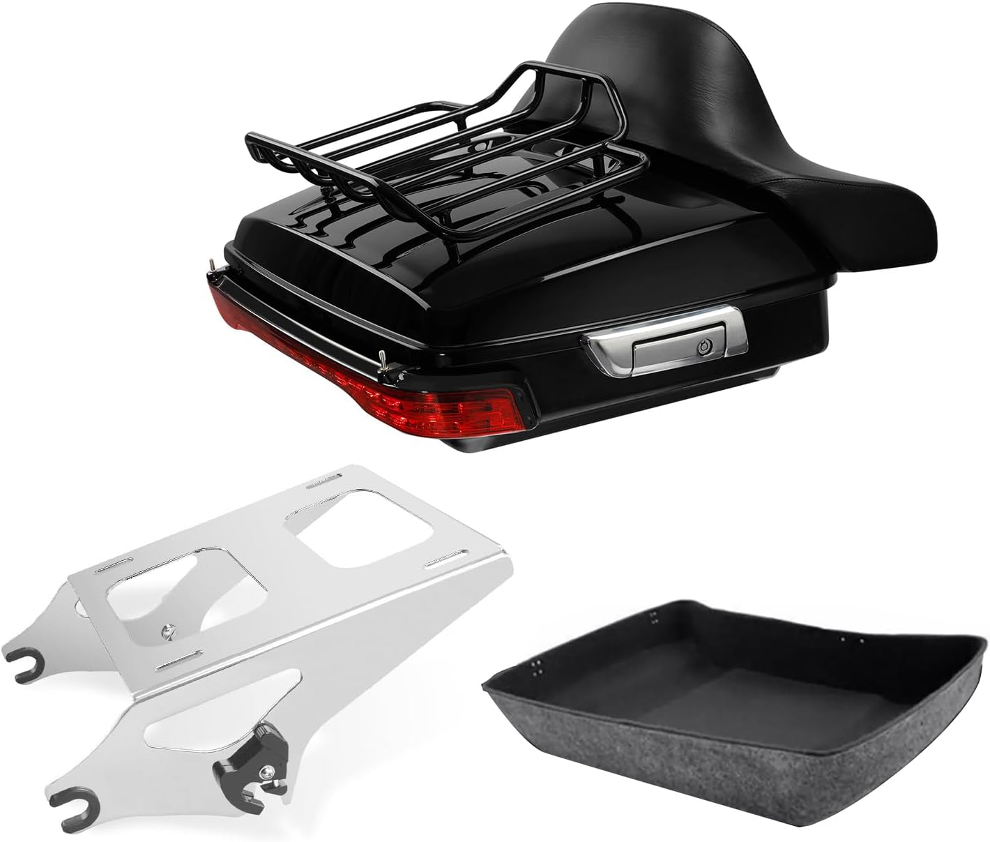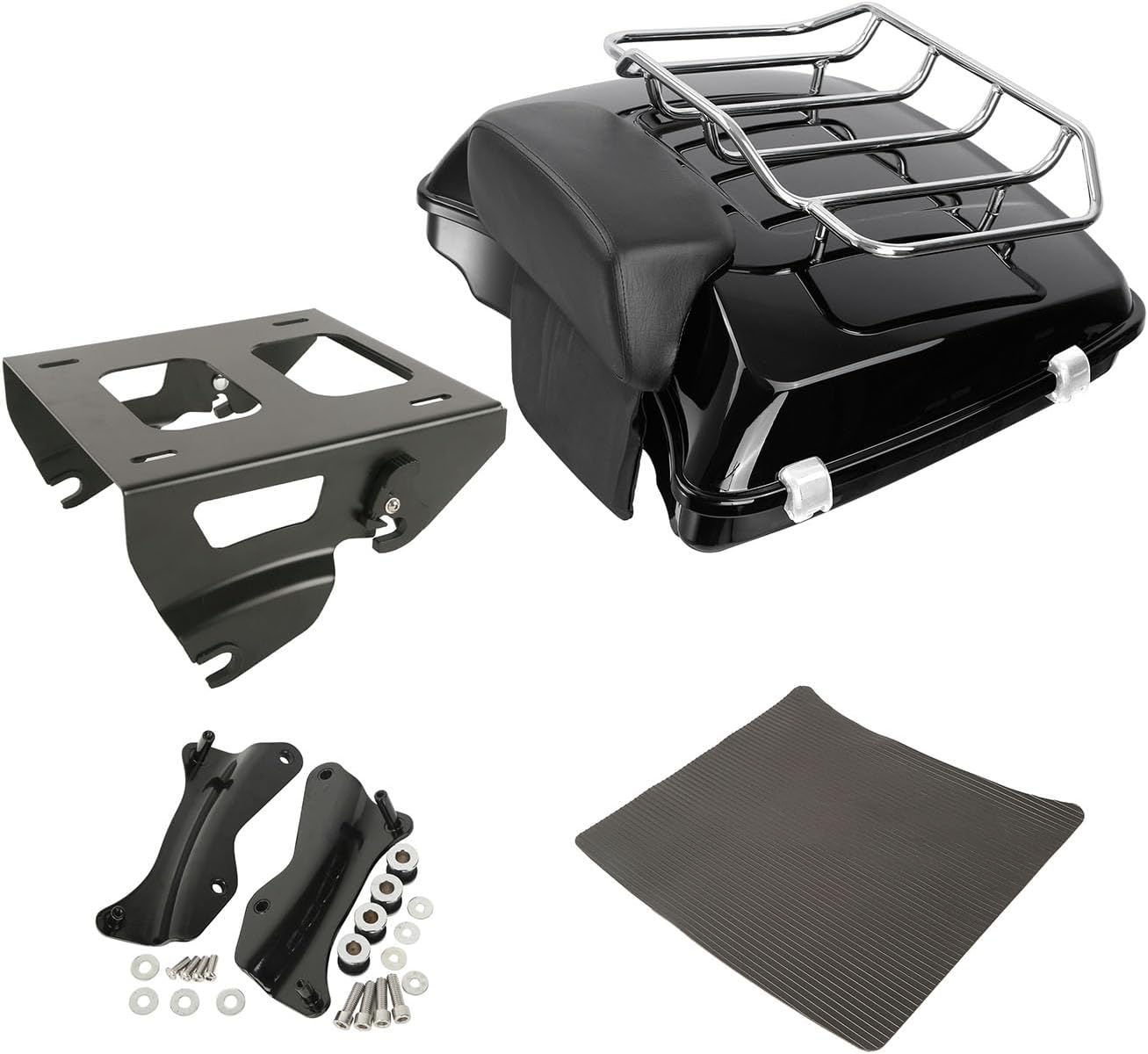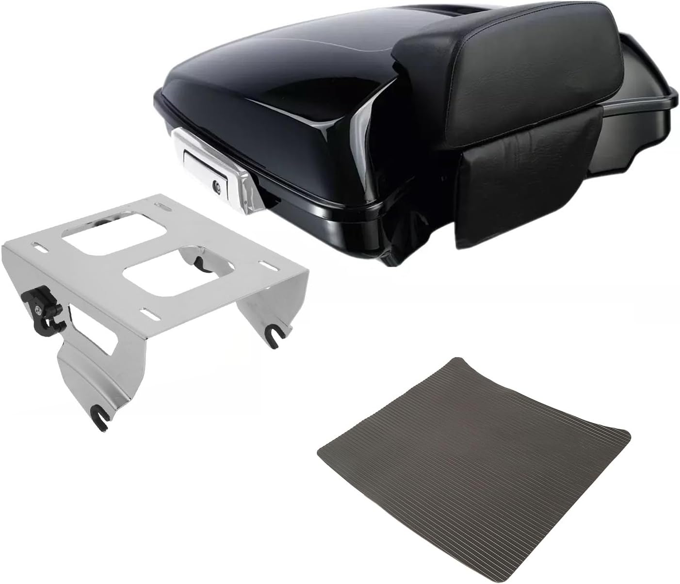 Product Details: Condition: Aftermarket 100% Brand New Razor Trunk W/ Lock Key Material: High Quality ABS Plastic Color: Vivid Black (Painted) Size: 26" Long x 5.5" Deep x 20.4" Wide Backrest Pad Material: Soft Synthetic leather+PP plastic+Foam+Iron Color: Black Detachable Two-Up Mounting Rack Material: High Quality Metal Color: Black Size: Details as picture shown Note: 1. Require re drill the holes on the base for install top luggage rack. 2. Require re drill the holes for install backrest (no pre). 3. Separate purchase of applicable Docking hardware is required. 4. The bolts to mount the on the Rack are not included. AGE INCLUDED: 1 x Trunk 1 x Backrest 1 x Detachable Two Up Mounting Rack 1 x Mat.