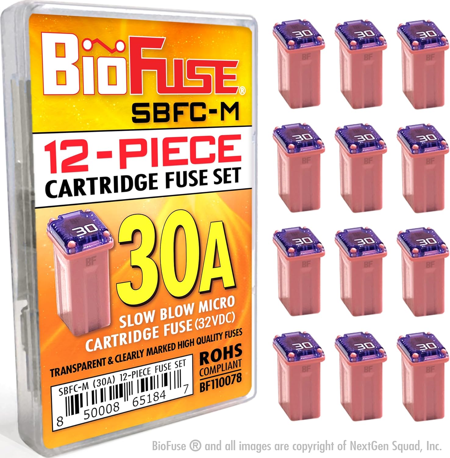 PACKAGE INCLUDES:8ct 15 AMP SBFC-M (Micro) Cartridge Fuses (Grey)8ct 20 AMP SBFC-M (Micro) Cartridge Fuses (Blue)8ct 25 AMP SBFC-M (Micro) Cartridge Fuses (White)8ct 30 AMP SBFC-M (Micro) Cartridge Fuses (Pink)8ct 40 AMP SBFC-M (Micro) Cartridge Fuses (Green)