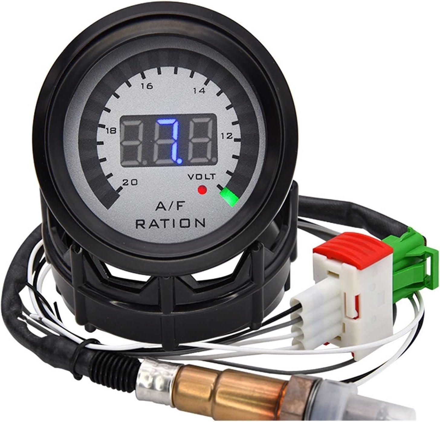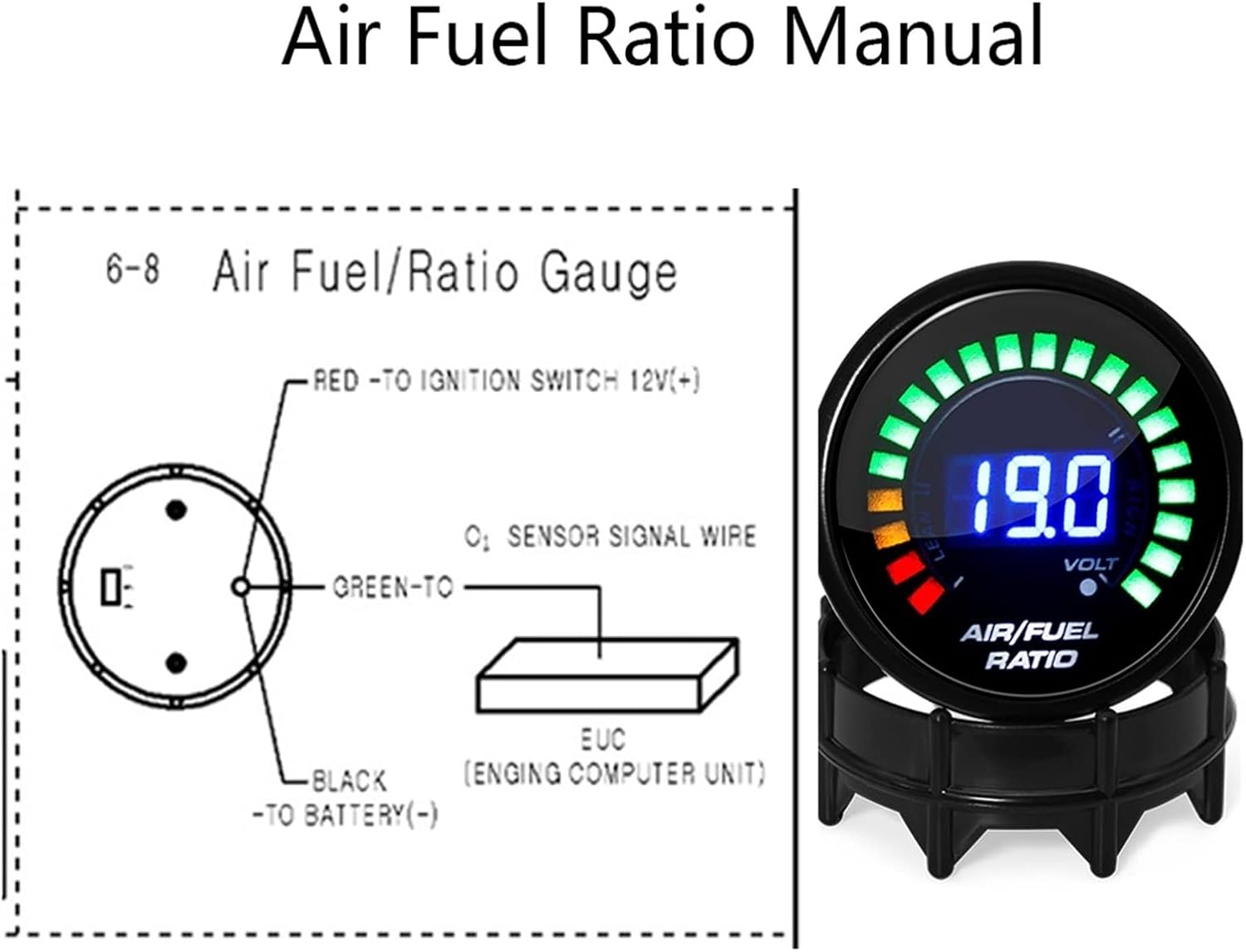 Oxygen Sensor Specification:Spiral: M18*1.5Use Wrench: 22mmResponse time: (600mV-300mV) 100ms.Response time: (300mV -600mV) 100ms.Starting time: 10sHeating resistance: 8.5~9.5Internal resistance: 200~300Connection:The white line is at heater abBlack line signal line C, gray line signal ground DThe green wire of the instrument is connected with the black wire of the sensor. The gray line is connected to the negative pole of the battery.white wire connect with the car shell or battery negative pole. Another white wire connect to the ACC line of ignition switchThe white line is the heater and does not distinguish between positive and negative electrodesAbout the air fuel gauge, please see the installation instructions.Attention: If you need the sensor and the gauge , please choose the item of sensor and gauge together.Package:1* Air Fuel AFR GaugeOr1* Narrowband Oxygen Sensor1* English Manual(Only teach how to install the gauge,but do not teach how to install the O2 sensor,thanks)