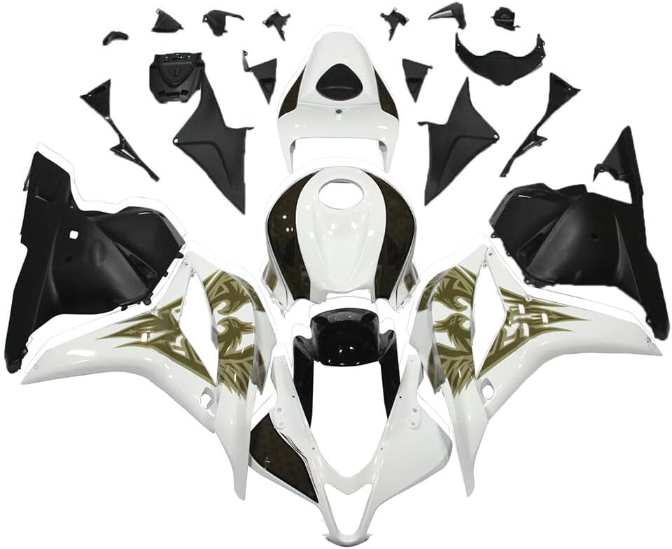 Description:FAIRINGS FITMENT: For Honda CBR600RR F5 2009-2012 MotorcycleMOLDING: InjectionMATERIAL: High quality, flexible and durable ABS plasticsCOLORS: Fairing will be as the pictures shown, and may NOT match the color of OEM or your original parts.CONDITION: 100% Brand New aftermarket non-OEM parts and the holes are pre-drilledPieces Included:COMPLETE FAIRING KIT: front nose fairing + left/right side fairings + front fender + tail fairing and inner trim parts (All parts shown in the pictures are included)OTHER ACCESSORY: Heat Shield & Tank Pad & Windshield & Fairing Bolt KitInstallation:Highly recommend installed by professional (Installation instruction is not included, please contact us if you encounter any installation problems)Note:If item got damaged during shipping (seldom happen), we'll provide replacement for free upon photo confirmation.This is an aftermarket custom item, not an OEM part. It will fit the models listed but modification may or may not be required. This item is intended for professional installation. Make sure it will fit before you buy. Thank you for your understanding.