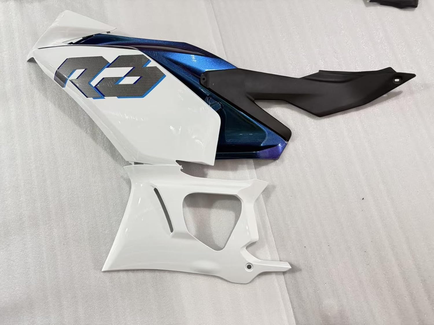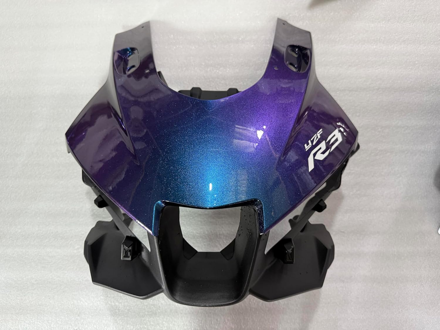Fit for:Yamaha 2025-2026 YZF R3/R25 Color:Fairing will be as the pictures show, and may NOT match the color of OEM or your original parts. Condition:100 % new; Injection Mold Technology; Non- OEM; Holes and tabs are built into the mold and align to Factory Settings; Material: High Quality ABS Plastic; Main pieces:front nose fairing+left/right side fairings+tank cover+front fender+ tail fairing+black inner pieces ; Trim pieces: usually unpainted black, and can be painted if asked; Other parts included: windscreen and heatshield; Attention: Instructions are Not Included; Installation: Highly Suggest Fairing be Installed by Professionals;