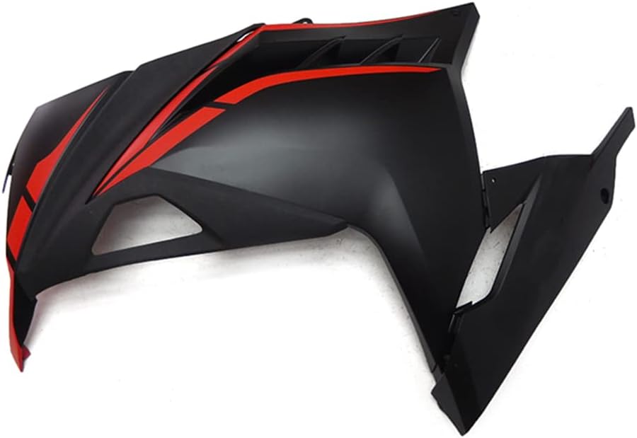 Description: FAIRINGS FITMENT: For Kawasaki EX300R/Ninja 300 2013-2017 Motorcycle MOLDING: Injection MATERIAL: High quality, flexible and durable ABS plastics COLORS: Fairing will be as the pictures shown, and may NOT match the color of OEM or your original parts. CONDITION: 100% Brand New aftermarket non-OEM parts and the holes are pre-drilledPieces Included: COMPLETE FAIRING KIT: front nose fairing + left/right side fairings + front fender + tail fairing and inner trim parts (All parts shown in the pictures are included) OTHER ACCESSORY: Heat Shield & Tank Pad & Windshield & Fairing Bolt KitInstallation: Highly recommend installed by professional (Installation instruction is not included)Note: If item got damaged during shipping (seldom happen), we'll provide replacement for free upon photo confirmation. This is an aftermarket custom item, not an OEM part. It will fit the models listed but modification may or may not be required. This item is intended for professional installation. Make sure it will fit before you buy. Thank you for your understanding.