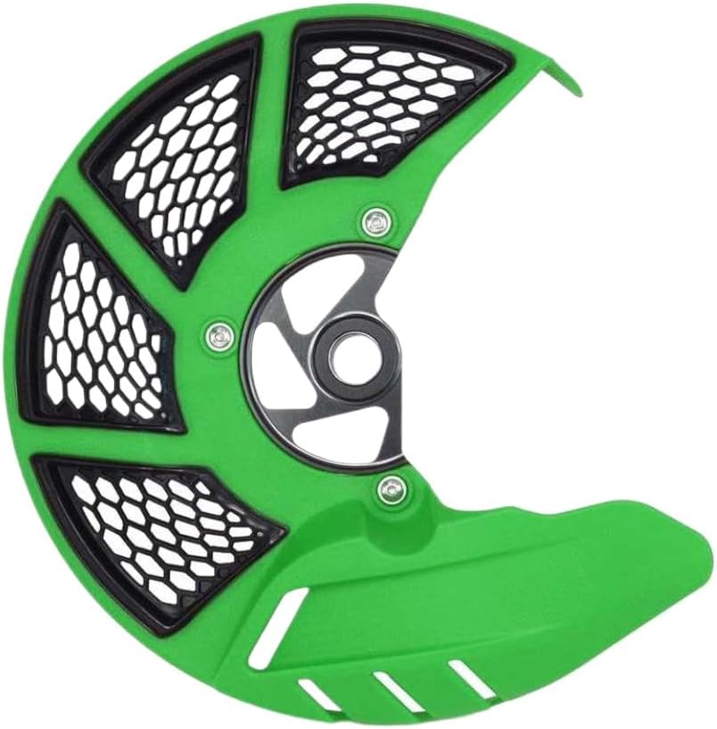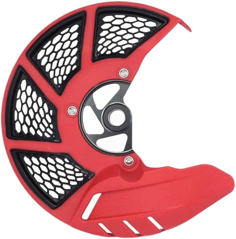 Front brake disc guard cover designed for RM-Z250 (2007–2019), RM-Z450 (2005–2019), and RM-X450Z (2010–2017).Constructed from polypropylene and aluminum components for and corrosion resistance.Features an open design that allows tire or brake pad changes without removing the cover.Compatible with OEM front wheels and brake discs up to 275mm in diameter.Mounting replaces the left front wheel spacer.Includes one disc guard and a gray mounting kit.Available in multiple colors: black, white, red, blue, orange, green, and yellow.Installation hardware is included; instructions are not provided.