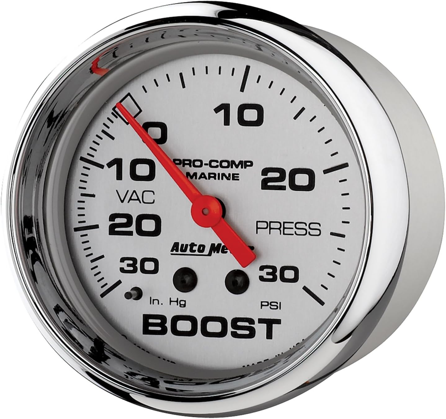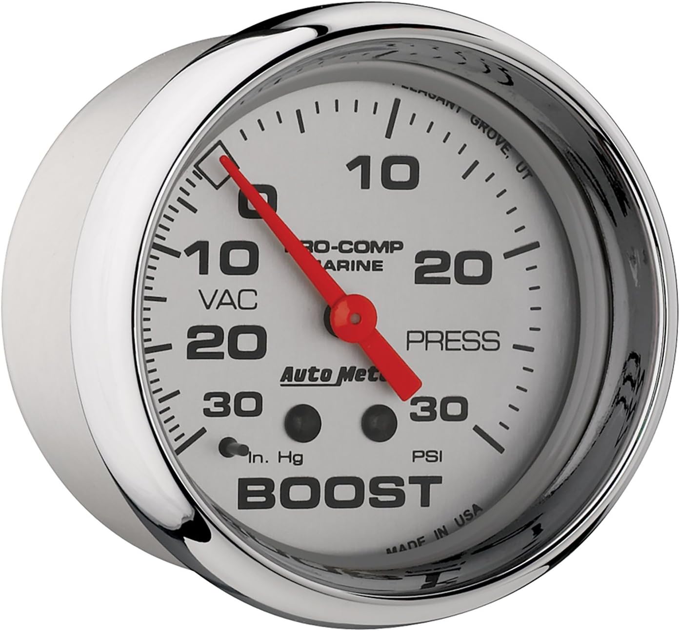 | Included Components | AutoMeter Gauge, Vac/Boost, 2 5/8", 30Inhg-30Psi, Mechanical, Marine Chrome (200775-35) |