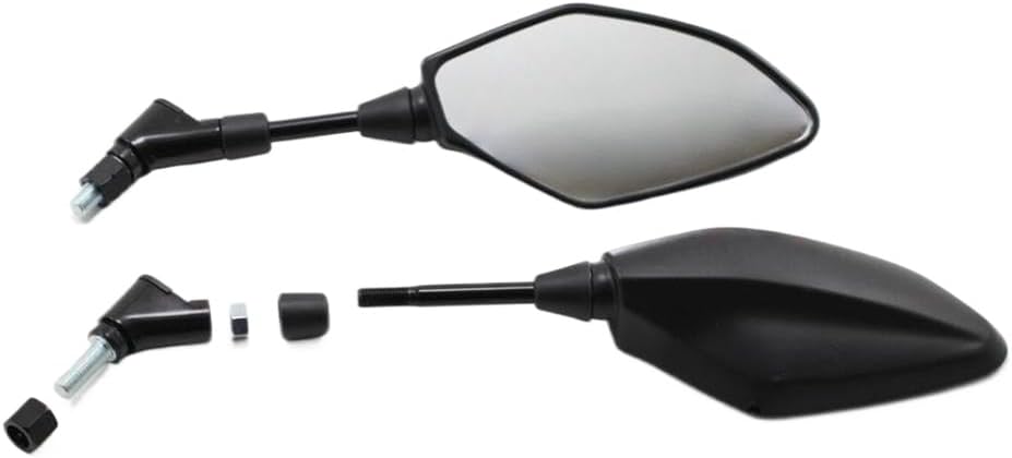 These aftermarket motorcycle rearview mirrors are E9 certified and compatible with Tenere 700 models including standard, Rally, World Raid, World Rally, Extreme, and Explore variants from 2019 to 2026.Please verify your motorcycle's model year and compatibility before purchase.The mirror housing is made of PPS material with a temperature-resistant paint finish.Mounting screws are 10mm x 1.25 pitch (clockwise thread on the left side, counterclockwise on the right).The color is black, though slight variations may occur compared to online images.Convex reflective glass provides a viewing distance of up to 50 meters and a width of approximately 10 meters.Clear white glass ensures visibility in both daytime and nighttime conditions.These mirrors offer universal fitment for many motorcycles; refer to product dimensions for proper installation.Package includes one pair (left and right).Installation instructions are not included.
