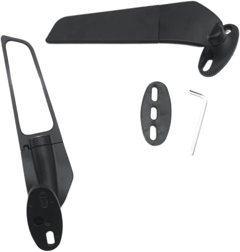 These rearview mirrors feature an aerodynamic wing fin design and are compatible with CBR125R, CBR250R, CBR300R, CBR500R, CBR600RR, CBR600F4, and CBR650R motorcycles.They are engineered to provide rear visibility and a streamlined appearance.The mirrors are designed for direct installation on the handlebars of compatible models and include materials selected for in typical riding conditions.