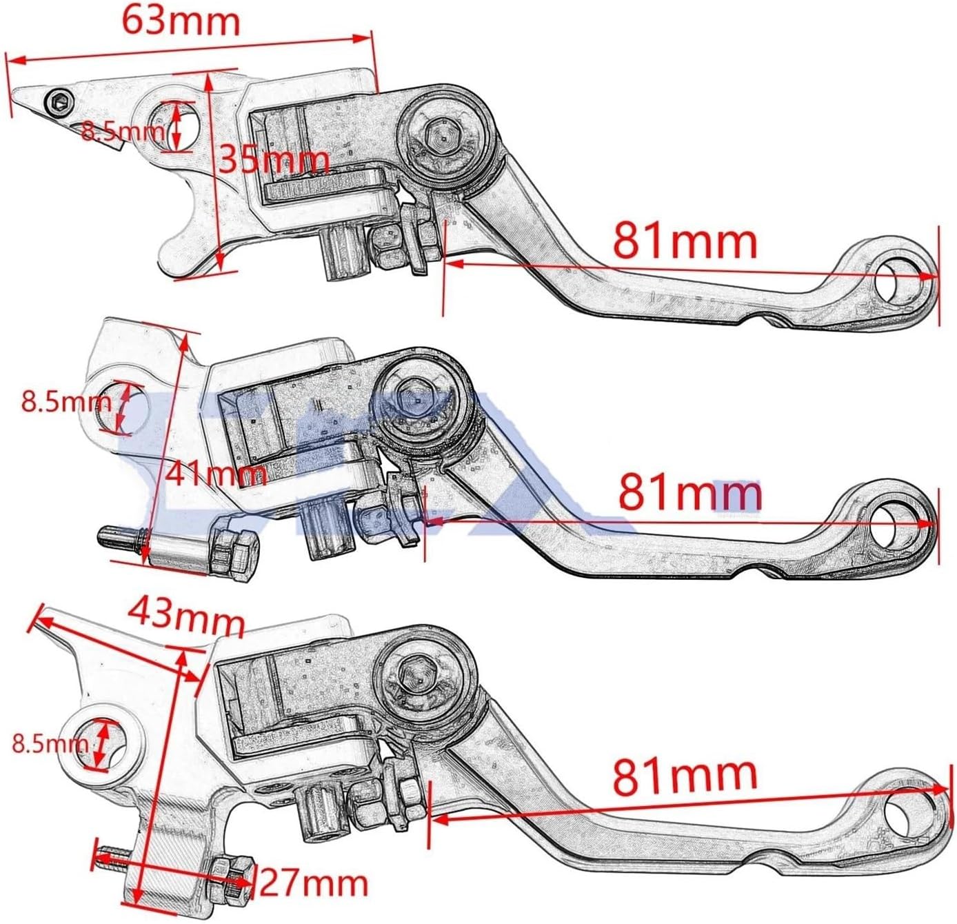 Description:Material: Aluminum Color: As shownClutch Length: 245mmBrake Length: 155mmClutch Hole Diameter: 22mmBrake Hole Diameter: 8mmPackage Includes:1 pair (brake & clutch)Fitment:245mm Clutch Lever:Suitable For Most Of Dirt Bike Motorcycle All Models All YearsSuitable for most Off-road motorcycles, ATVs, UTV bikesFor HONDA KTM HUSQVARNA YAMAHA KAWASAKI SUZUKI GasGas etc.For AVANTIS、MOTOLAND、BRZ、MOTAX、SM-MOTORS GR、ZONGSHEN、FXMOTO、KAYO、BOSUER、GUIZUN、RACER、KEWS、ZUUMAV、BEIHAI、HENGJIAN etc.155mm Front Brake Lever:For KAYO T6 T4 K6For KTM 125-500 SX/SX-F/XC/XC-F/EXC/EXC-F 2013-2023For Husqvarna125-501 TE/FE/TC/FC/TX/FX Models 2013-2023For HondaCRF 250X 2004-2021CRF 450X 2005-2021CRF 250R 2004-2021Features:Ultra-precision machine cutting, ultra-light structure, high precisionprecision machined pivot bore to ensure a perfect fit.Can reduce 50% of clutch lever pressure, making you more comfortable to use.Direct replacement for stock levers. No modification!Note: 1.Please allow 0.1-0.3cm differences due to manual measurement, thanks.2.Please understand because of the light irradiation or computer display difference, so I can\'t guarantee photos and real color is the same.3.Please make sure this part fits your motorcycle before placing an order.