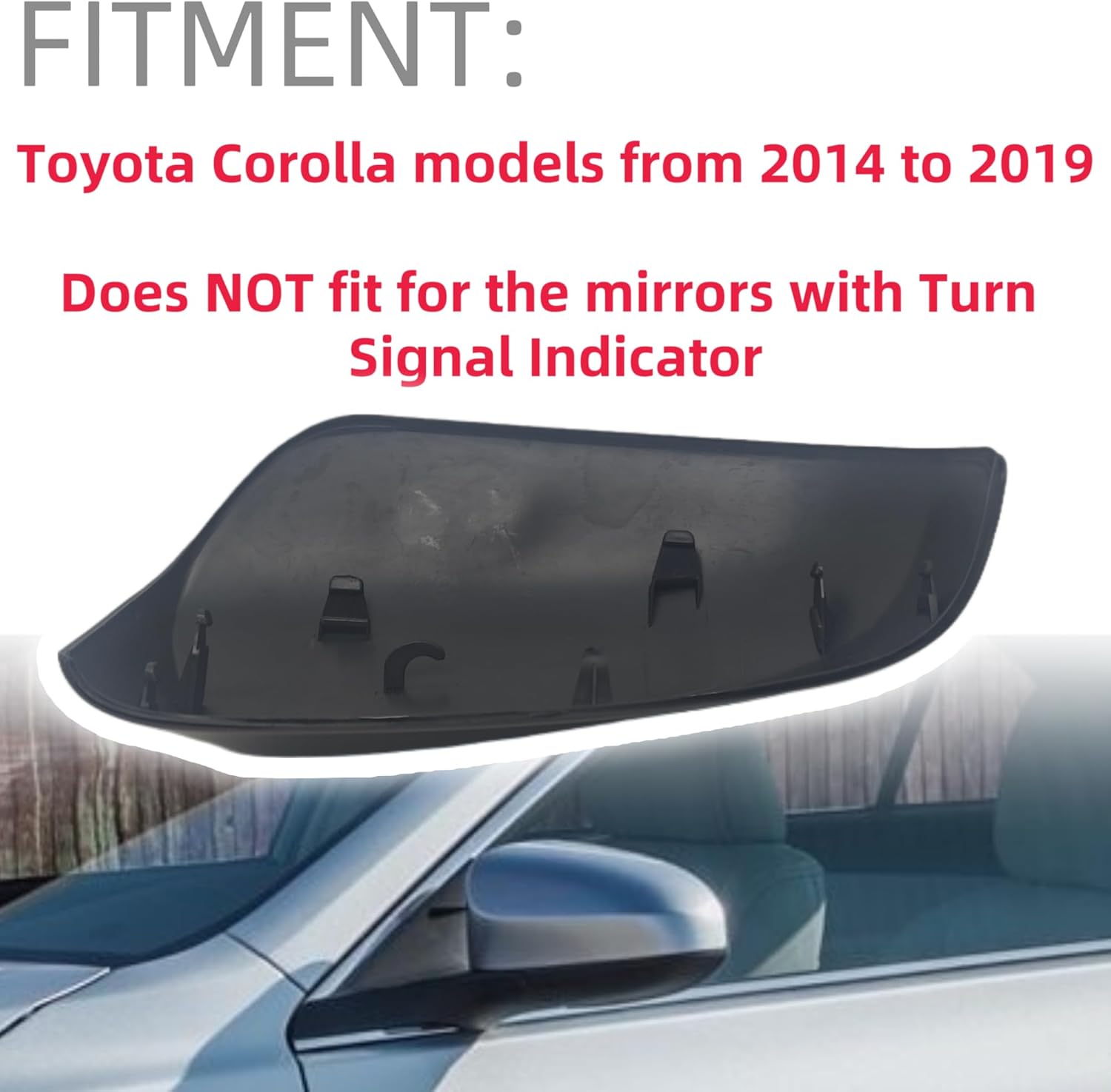 A Pair Mirror Cap Set Fitment Compatible with : Does NOT fit for the mirrors with Turn Signal Indicator. Does NOT fit Coupe models. Product Attributes Brand: ABAGAEL Condition: NEW Position: Passenger side & Driver side Package included: 1 pair Mirror Cover Warranty:12 months. If you have any problems about this Mirror Cap, simply tell