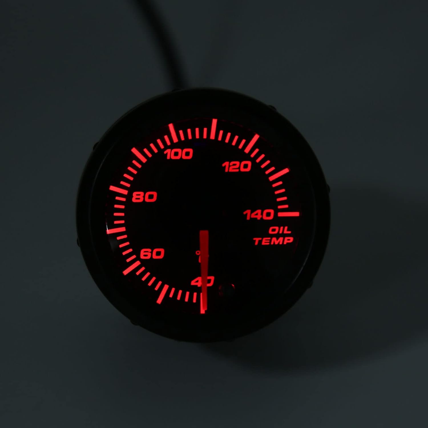 Item Type: Oil temperature gauge with sensorMaterial: ABSSize: Approx. 2in/52mmSensor Thread Size: Approx. 1/8in NPT7 Color Settings: Blue, green, red, cyan, yellow, purple and whitePackage List:1 x Oil Temperature Gauge1 x Sensor1 x Manual1 x Harness