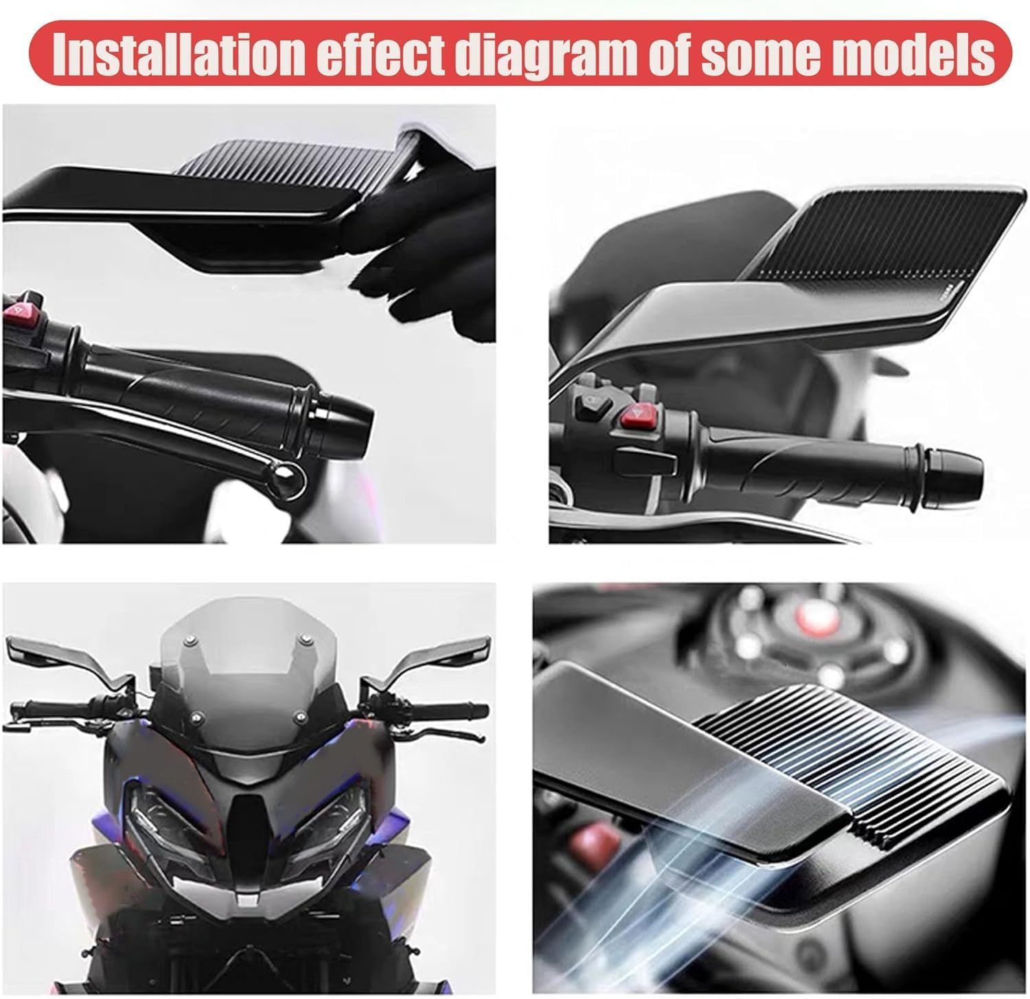 ------- Welcome to our store! --------We are a store specializing in car and motorcycle accessories, our products are a very good choice for you and your car.♨ Product features:① Crafted from premium aluminum alloy, the mirrors feature a black geometric shell and high-clarity white lenses, delivering excellent visibility and long-term durability in various weather conditions.② Adjustability ensures you can find the optimal viewing direction to increase your safety.③ This rearview mirror provides you with high resolution and provides the driver with a wide, high-resolution field of view, eliminating blind spots.④ Sleek lines and a technologically advanced look add a stylish and sporty touch to your motorcycle.⑤ The motorcycle rearview mirror comes with screws and tools for direct installation.♨ Product details:① Product name: Motorcycle Rearview Mirror② Material: High-quality aluminum alloy③ Quantity: 1 Pair④ Placement on Vehicle: Left, Right⑤ Package content: 2 x Motorcycle Rearview Mirrors♨ Notes:Please allow slight measurement deviation due to manual measurement. Thank you for your understanding.♨ Best service:We can provide the best products and service, if you have any questions, please contact us by email, we will reply you within 24 hours, we will continue to serve you well as always. We promise to provide you with 100% satisfactory service!