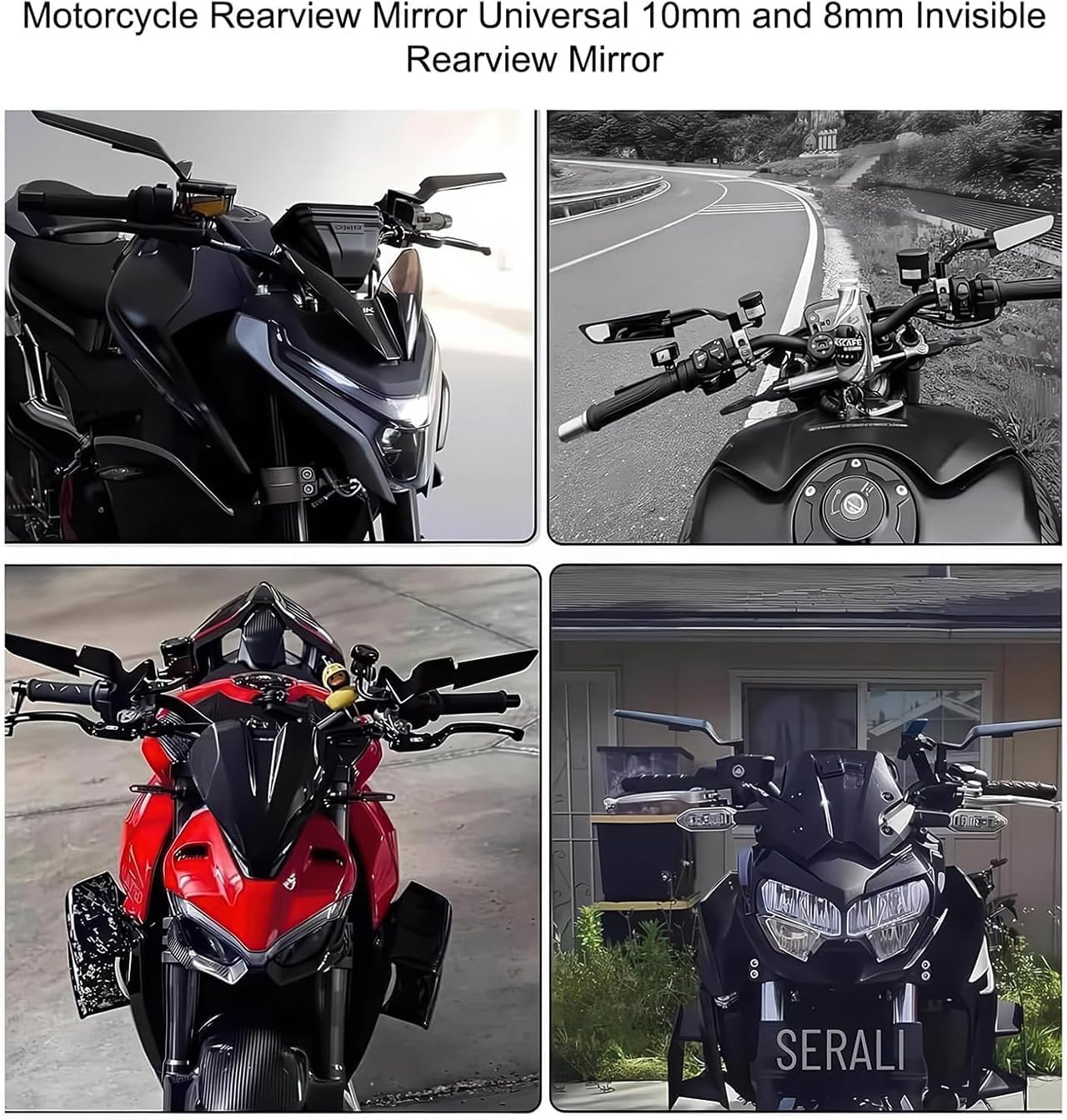 ✦✦【Product Features】✦✦1. Aerodynamic wing design, blending aesthetics with aerodynamics. The 25° wing angle creates a streamlined profile while generating downforce, significantly enhancing the motorcycle's grip and handling, particularly at high speeds.2. Features a clear convex glass lens that effectively reduces blind spots and provides a wider, high-resolution field of view, ensuring a safer riding experience.3. The bracket is constructed from robust aluminium alloy for secure mounting. Its heat-resistant, lightweight and corrosion-resistant housing ensures enduring durability across all weather conditions, guaranteeing safe operation whether traversing rugged mountain roads or motorways.4. This motorcycle rear-view mirror features straightforward installation. Simply secure it using the included fittings – no modifications required.✦【Product Description】✦1. Product Name:Motorcycle Side Mirrors2. Product Material: Aluminum Alloy + Glass3. Product Color:As the picture shows4. Vehicle Installation Location: Left, Right✦【Package List】✦2 * motorcycle side mirrors1 * mounting kit✦【Note】✦Please verify compatibility with your motorcycle model before purchasing. (Two sizes are available.)✦【Best Service】✦If you have any questions, please do not hesitate to contact us thank you for your trust.