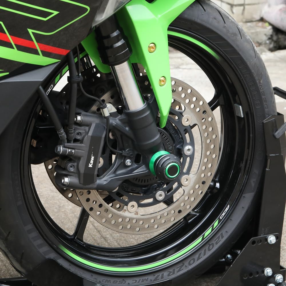 Note: Before ordering, make sure this part is compatible with your bike. Fitment : FOR ZX4R 2023 2024 2025 2026 FOR ZX4RR 2023 2024 2025 2026 Material: CNC Aluminum 6061 Anodized. Made in China Function: Axle Sliders are customized to the specific axle length of the motorcycle. In the event of a collision, the forks, calipers and discs are kept off the ground to avoid damage to these core components, protecting both the motorcycle and the rider. We will ensure that the package can be delivered to you and that you will not receive a loss. If you have any questions after receiving the package, please contact us. As a very responsible seller, we will solve customers' problems as soon as possible.