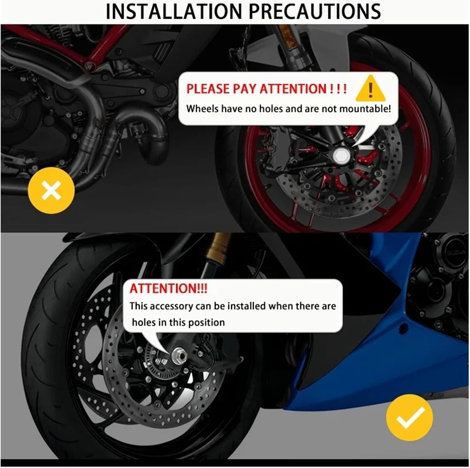 The rotatable decorative wheels of the motorcycle can effectively absorb the impact during sliding and help slow down the motorcycle to avoid getting stuck and overturning.For GSR600 750 GSXR750 600 GSX-S1000 1000F X Motorcycle RearFront Wheel Axle Fork Crash Sliders Protector PadColor: Gray Golden Black Red BlueMaterial: CNC AluminumFitment:For GSR600 2008-2011For GSR750 2011-2016 For GSX-R600 R750 2001-2010For GSXR 1000 2001-2006For GSX-S1000 S1000F 2015-2025For GSX-S1000S 2019-2025We sincerely care about your customer experience and the feeling of using our products. If you have any questions or concerns, please feel free to let us know!thanks