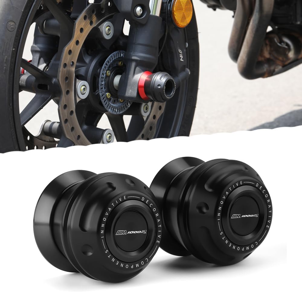 Note: Before ordering, make sure this part is compatible with your bike. Fitment : M1000R 2023 2024 2025 + Material: CNC Aluminum 6061 Anodized. Made in China Function: Front Axle Sliders are customized to the specific axle length of the motorcycle. In the event of a collision, the front forks, calipers and discs are kept off the ground to avoid damage to these core components, protecting both the motorcycle and the rider.