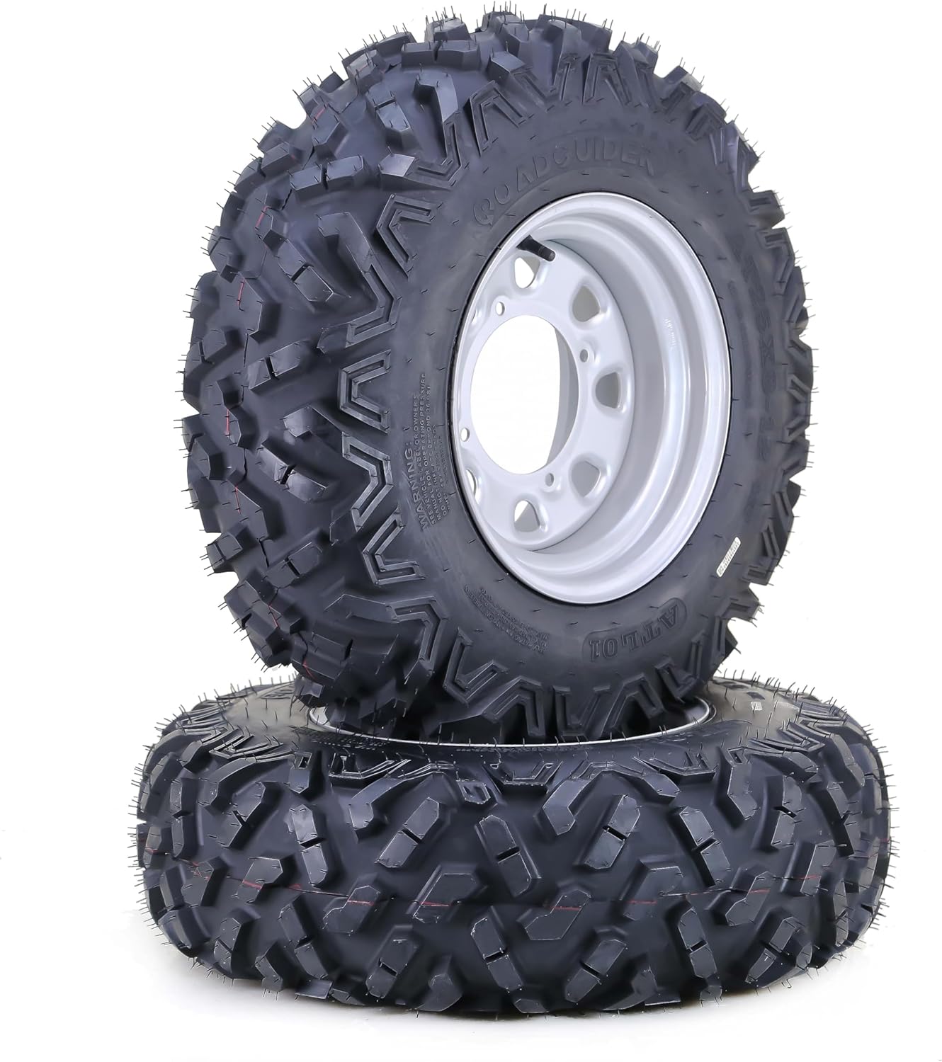 Non-directional tread pattern with deep tread depth;. Excellent on pavement, dirt and mud;. Enhanced lug depth brings better brake control;. Heavy 6 ply rated nylon construction resists punctures and abrasions;. Wheel detail: 4-110mm bolt pattern, center hole: 67.9mm, bolt hole dia: 14.5mm, offset: 5+2, style: Silver modTire SpecificationsTire Size: 25x10-12Brand: LIBRATread Pattern: ATLASPly Rated: 6Tread Depth: 0.79Rim Width: 7Max Load: 420lbs@7psiLoad Index: 50Please note: fitment guide is for reference only and does not guarantee the tire will fit your specific model. Please check your owner's manual to ensure proper fitment.